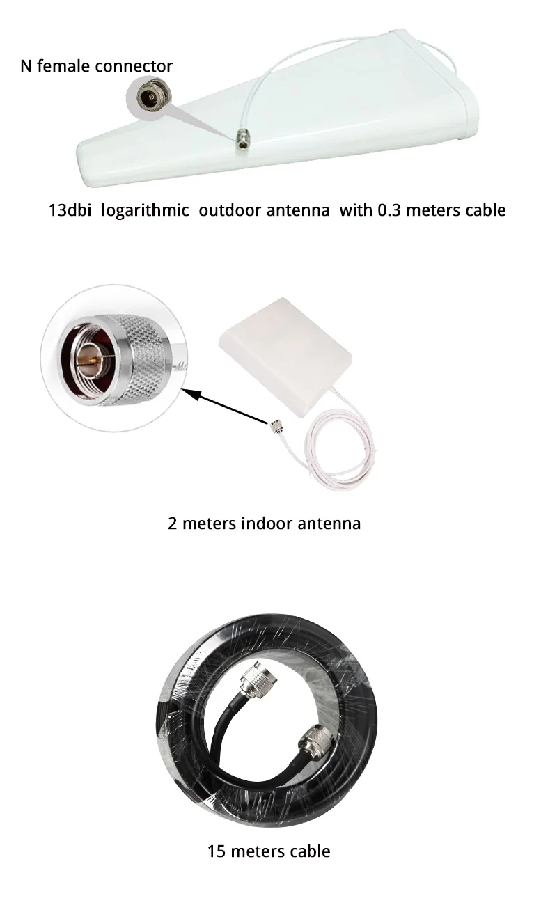 In the box1*booster ,1*plug,1*indoor antenna,1*oudoor antenna,1*15M cable