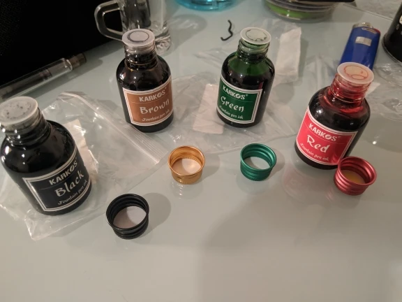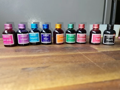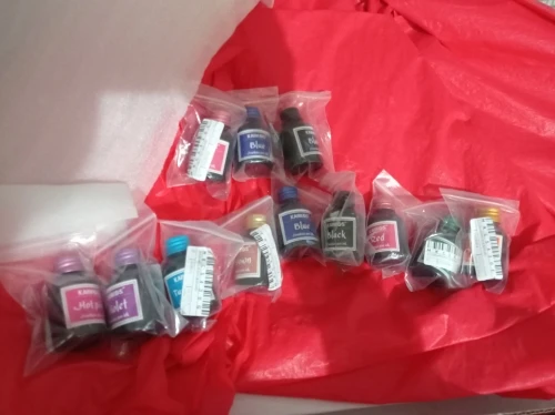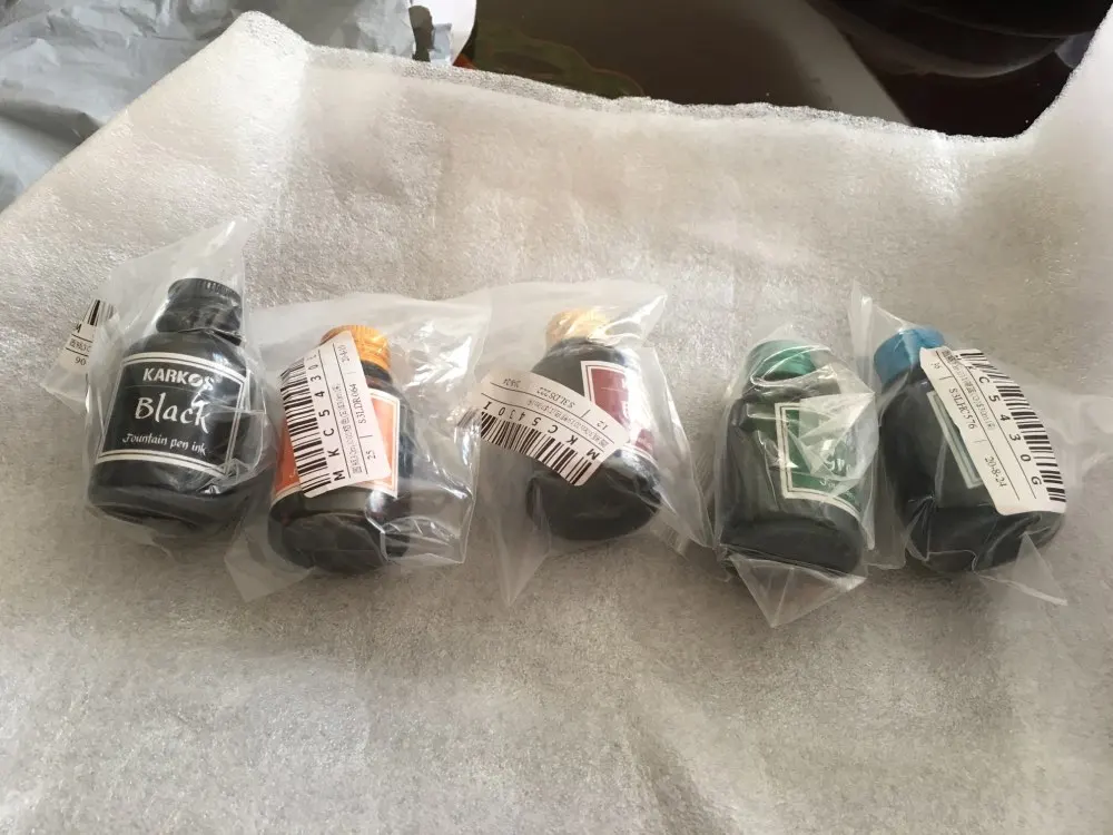 Доставка в Канаду занимает около 30 дней с помощью выбранного продавцом способа бесплатной доставки. Я беспокоился о том, что никогда не прибыл сначала, но это было действительно очень разумно. Упаковка была немного хрупкой, немного пластиковой упаковки для подушек и крошечных бутылок в отдельных мешках ziplock. Без пузырьков. Они изготовлены из довольно жесткого гибкого пластика, поэтому ничего не будет течь, если только кто-то действительно не прижмет вашу посылку; Но более прочная упаковка будет хорошей для него. Чернила-это классические вещи Karkos, довольно сухие, наполняются дешевой бумагой и немного «детскими», но они отлично подходят для обработки и смешивания цветов для ручек. Один трюк, который я обнаружил,-разбавить каждую нагрузку чернил в вашей авторучке примерно с 1/4 емкостью водосборника, где вы добавили и растворили крошечную капельку растительного глицерина (дешевые вещи, получить из аптеки или супермаркета). Это делает чернила более взрослыми для меня, увеличивает толщину и течет лучше. Отрегулируйте воду/глицерин по вкусу. В целом я доволен заказом и благодарю продавца!