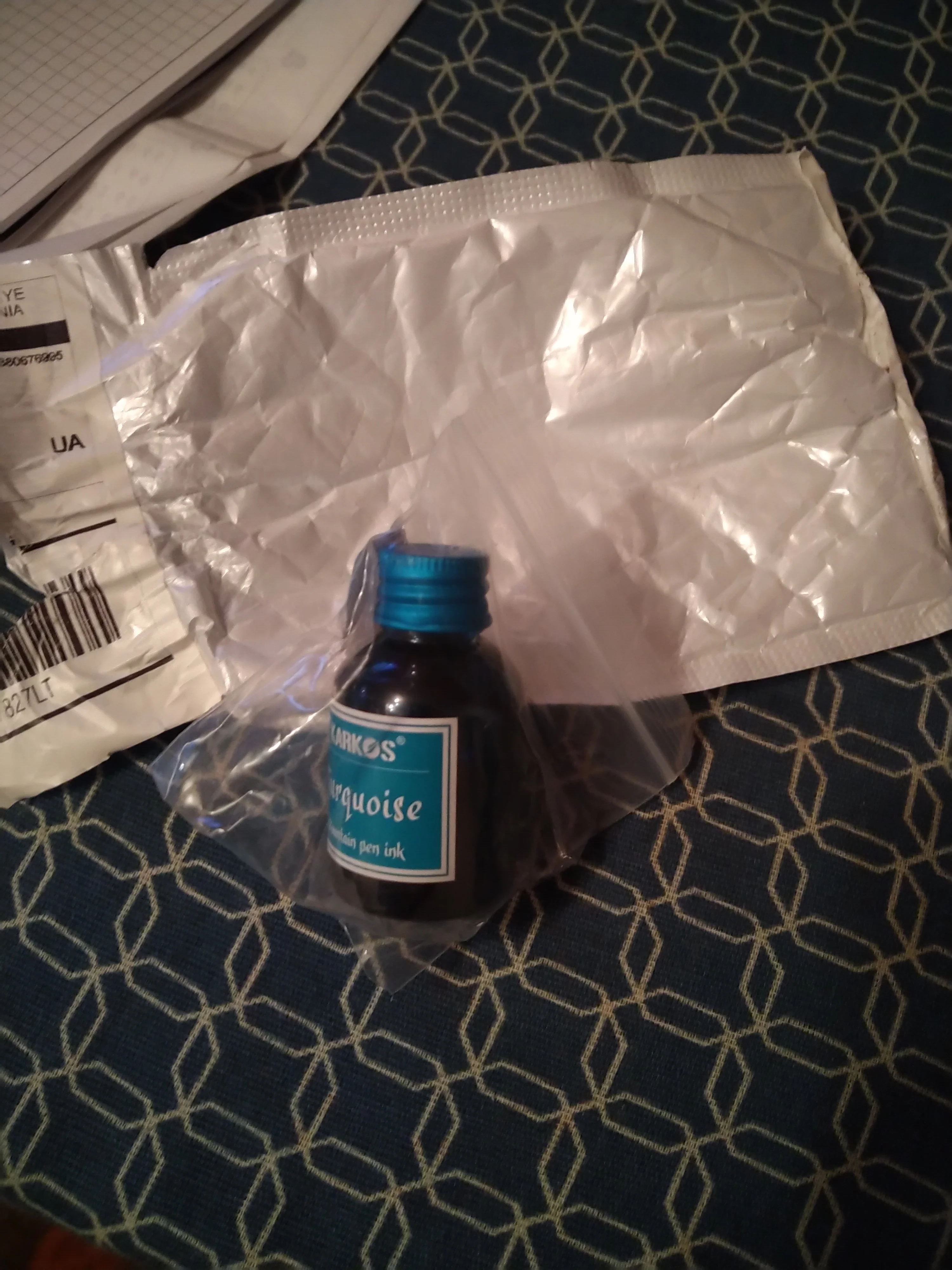 Шла посылка два месяца, чернила хорошие, пишет ручка отлично.