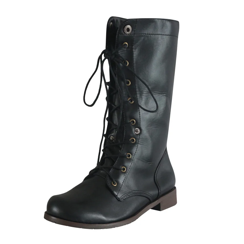 Мужские и женские ботинки на плоской подошве, с круглым носком, на низком каблуке, на шнуровке, обувь в западном стиле, кожаные мотоциклетные ботинки средней длины, обувь размера плюс 43