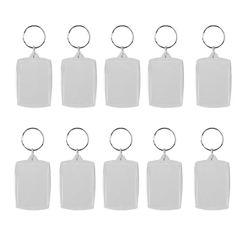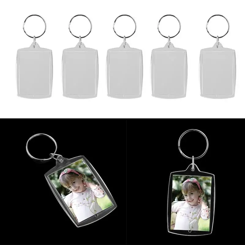 100 шт. прямоугольная прозрачная пустая акриловая рамка для фотографий, брелок для ключей, брелок DIY, сплит-кольцо, Подарочная цепочка для ключей