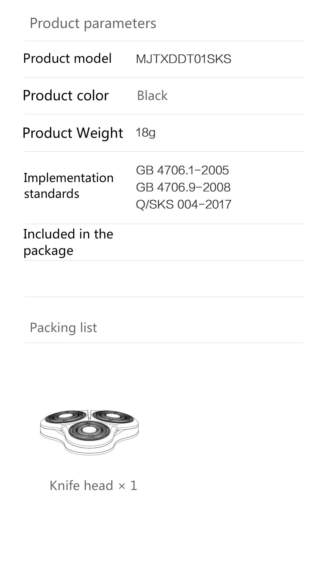 Вес нетто: 18 г Модель: MJTXDDT01SKS Подходит для электробритва Mijia/S500