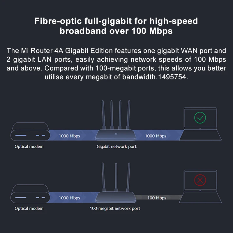 Xiaomi Mi Router 4A Gigabit Edition 1000M 2,4 GHz 5GHz WiFi ROM 16MB DDR3 64MB 128MB с высоким коэффициентом усиления 4 антенны дистанционное управление приложениемПриложение поддерживает только китайский и английский языки, а Xiaomi Mi WiFi Router 4A Gigabit Version-китайская версияОсобенности:-128 МБ большой памяти, поддержка 128 максимальное подключение к терминальным устройствам-Поддержка двух диапазонов 2,4 ГГц 5,0 ГГц с максимальной скоростью 1167 Мбит/с-4 антенны сильный сигнал широкий охват быстрая передача-Интегрированный с PA (усилитель мощности) и LNA (усилитель низкого шума) повышает мощность передачи сигнала и чувствительность.-Управляйте настройками сети через приложение MiWiFi на платформе Android и iOS-Двойной чип рассеивания тепла для повышения стабильности работыИнструкции по использованию:1. Найдите и загрузите приложение ldquoMi Wi-Firdquo в Google Play или APP Store.2. Включите маршрутизатор и откройте Wi-Fi (на телефоне) для подключения маршрутизатора.3. 1) Создайте скидку Mi, затем Войдите в свою скидку;2) Следуйте инструкциям по эксплуатации, нажмите rdquoDial-up» для ввода вашей учетной записи сети и пароль;3) Нажмите ldquoMore Optionsrdquo, Завершите работу основной базовой станции (Установите новое имя сети и пароль).4. Откройте приложение, Завершите настройку WiFi.Технические характеристики:Бренд: XiaomiМодель: Mi Router 4A (гигабитная версия)Цвет: белыйМатериал: АБС + ПоликарбонатРазмер изделия: прибл. 20,1*12,2*17,4 см/7,91*4,80 * 6.85inВес изделия: прибл. 250 г/8,82 унцийРазмер упаковки: прибл. 30*20*5 см/11,81*7,87 * 1.97inОбщий вес: прибл. 550 г/19,40 унцийАппаратная конфигурацияПроцессор: MT7621A MIPS 880 МГц двухъядерныйВнутренняя память: 16MBОперативная память: 128 МбХранение: нет2,4G WiFi: 2*2 (поддержка IEEE802.11n, Макс 300 Мбит/с)5,0G WiFi: 2*2 (поддержка IEEE802.11ac, Макс 867 Мбит/с)Антенна: вечная всенаправленная 4 антенныСистема охлаждения: натуральныйИнтерфейсLAN порты: 2x10/100/1000M Auto MDI/MDIXПорты WAN: 1x10/100/1000M Auto MDI/MDIX2 * светодиодный индикатор1 * Кнопка сброса1 * Потребляемая мощностьБеспроводной параметрыДва диапазона: 2,4 ГГц, 5,0 ГГцБеспроводной канал:Канал 2,4 ГГц: 1,2,3,4,5,6,7,8,9,10,11,12,135 ГГц канал: 36,40,44,48, 149153157161165Модуляция: 11b : DSSS: DBPSK(1 Мбит/с),DQPSK(2 Мбит/с),CCK (5,5/11 Мбит/с)11a/g : OFDM:BPSK Нью-Йорк (6/9 Мбит/с),QPSK(12/18 Мбит/с),16QAM Нью-Йорк (24/36 Мбит/с),64QAM(48/54 Мбит/с)11n : MIMO-OFDM:BPSK,QPSK,16QAM,64QAM, 256QAMБеспроводная безопасность: шифрование WPA-PSK / WPA2-PSK2, управление беспроводным доступом (черный список), скрытие SSID, интеллектуальная сеть против потертостейНастройка программного обеспеченияОС: Глубина настройки на основе интеллектуального маршрутизатора OpenWRT операционная система MiWiFi ROMПоддерживаемые языки: китайскийЯзык приложения: китайский, английскийПоддержка: веб, Android, iOS Вопросы и ответы:Роутер Xiaomi поддерживает IPTV,L2TP DSL и PPPOE?Нет, не поддерживайте.
