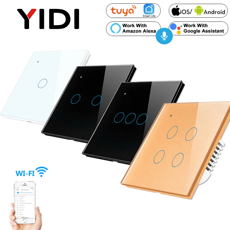 Внимание: Проверьте, какой способ подключения (live + null line или live line no null version) подходит для вас перед размещением заказа.YIDI Tuya Smart WiFi сенсорный выключатель, беспроводное приложение Smart Life, голосовое дистанционное управление, умный дом ЕС, 1 2 3 Way 1 2 3 4 Gang настенный светильник, сенсорный выключатель, работает с Amazon Alexa Google Home AssistantСпецификация:Название товара: настенный светильник WIFI Smart Touch