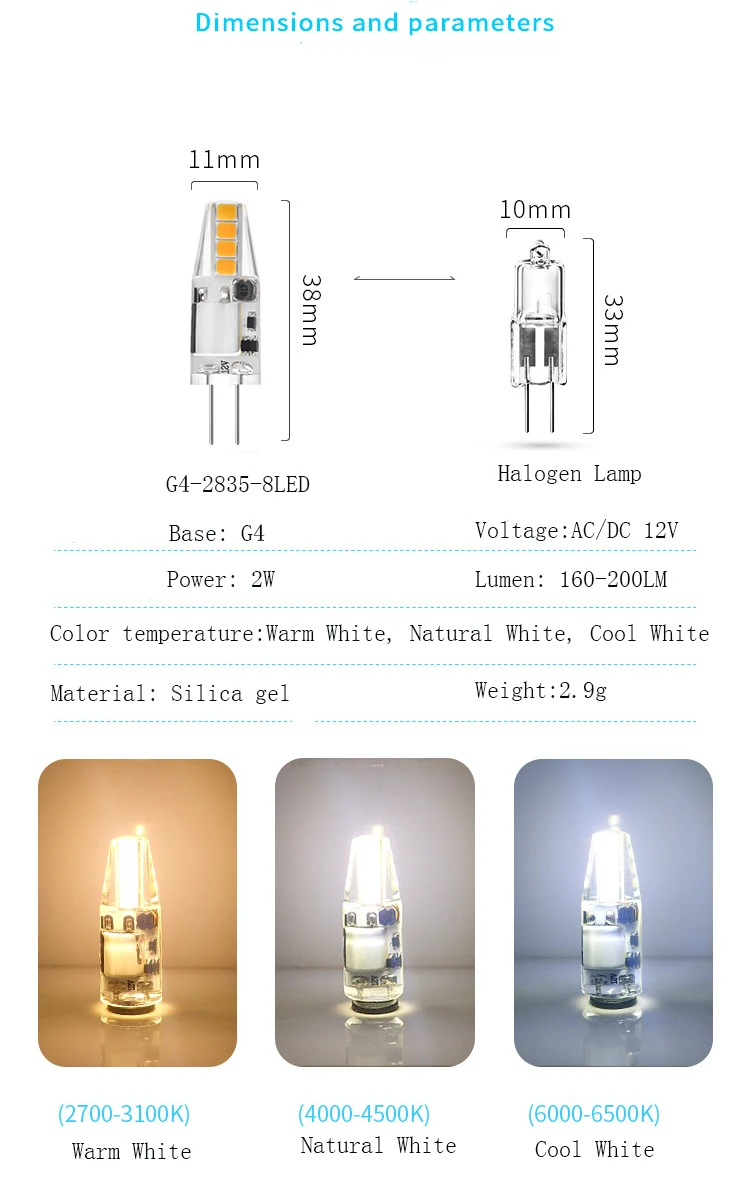 Двухштырьковый светодиодный светильник G4 может быть легко установлен по сравнению с обычными галогенными лампами.