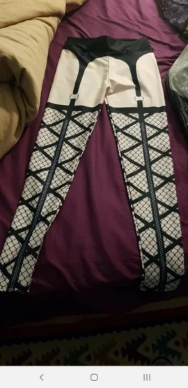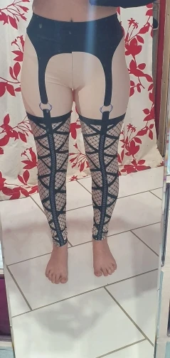 Красивые леггинсы; Имитация чулок на подтяжках. Фурнитура на уровне конструкций смещена на швах... (мы можем видеть спереди и сзади для подтяжек и внутри ног для чулок)... Но я не думаю, что это очень серьезно! Большой эластичный внутренний шов на талии делает пояс. Я сделал следующую таблицу размеров, но она немного тугая... (Я не хочу расти) Доставка в течение 2 недель. Минимальная упаковка, которая позволяет избежать ослепления моего мусора, могу ли я подтвердить! Обратите внимание на 8/10.