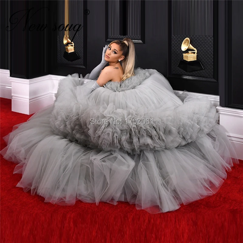 Многоярусное Тюлевое платье знаменитости Дубая 2020 новый дизайн пышные вечерние платья без бретелек для особых случаев серое арабское платье для выпускного вечера