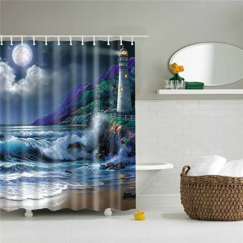 Водонепроницаемая тканевая занавеска для душа, набор s, тканевая занавеска для ванной, морской пейзаж, экран для ванны, декоративная занавеска s