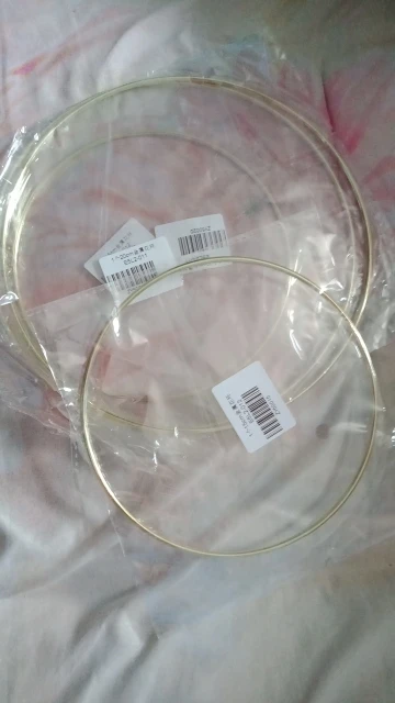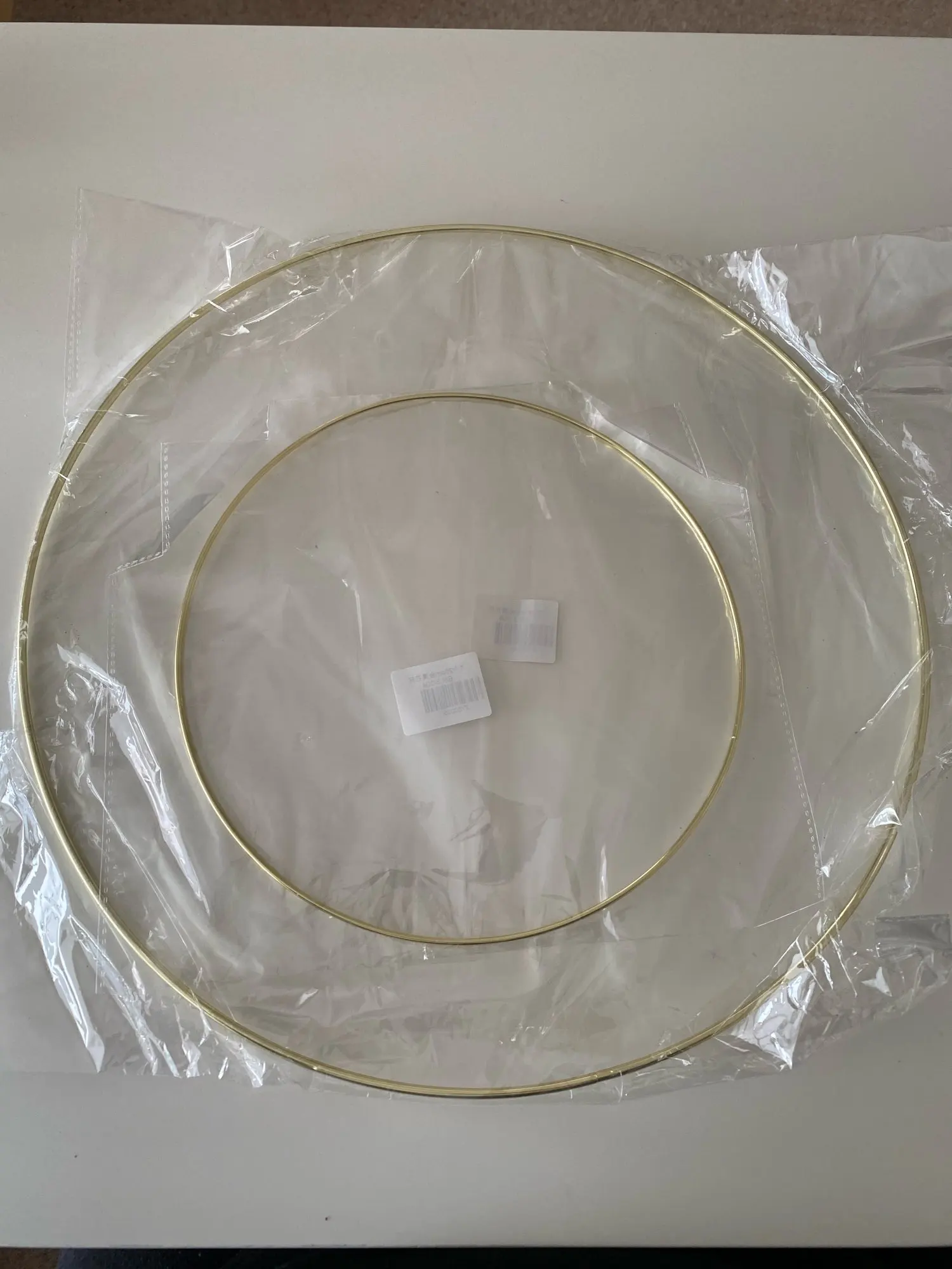 very good quality. Nice metal. not empty inside but filled. I like that it is not plastic. Nice golden colour. looks like good quality. I definitely recommend it tk anyone. small ring is 30cm. Big ring is 40cm. Good sizes both. Will buy more if this is not enough for my project.