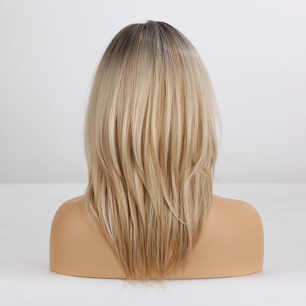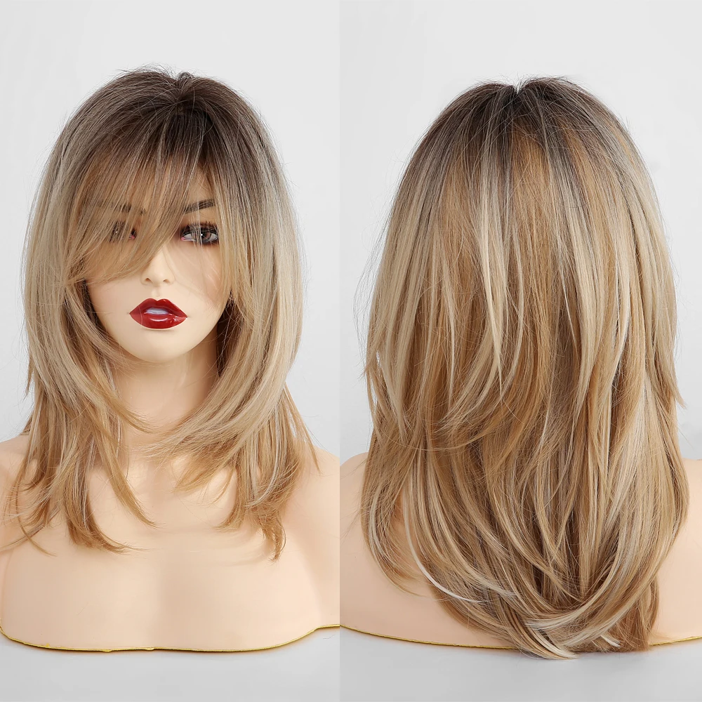 Синтетические волосы Луи FERRE, парики среднего размера, для женщин, из термостойкого волокна, с эффектом омбре, черный блонд, пепельный волнистый, многослойный парик, с челкой