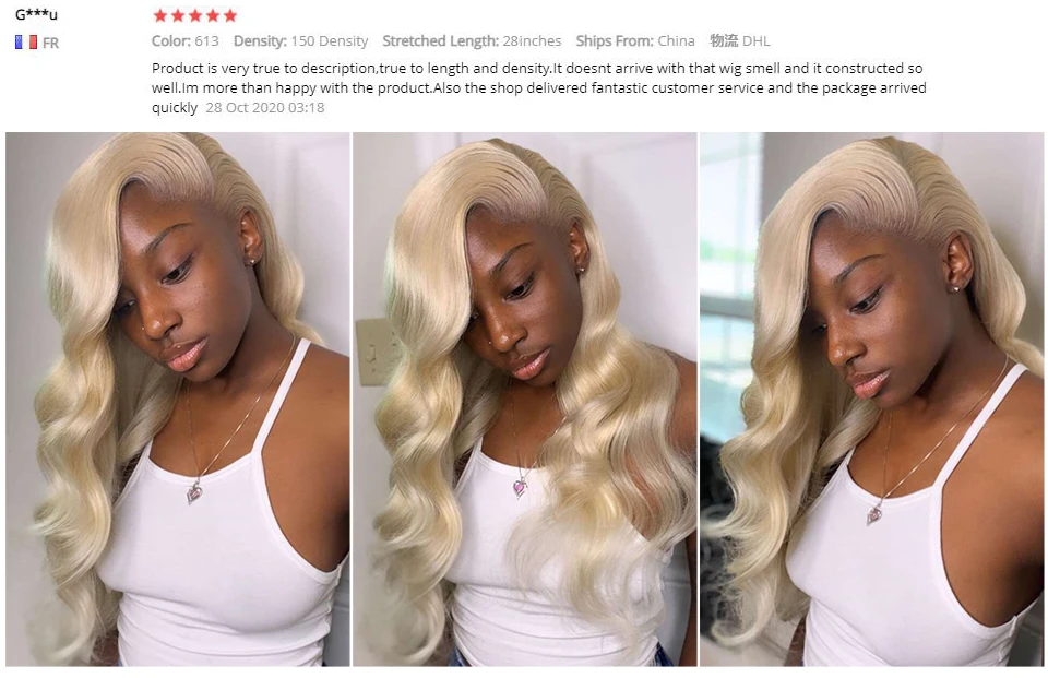 Мне нравится этот парик блонд! Очень красивый, волосы мягкие, определенно 100% человеческие волосы, волосы отправляются очень быстро, без преувеличения. Я буду покупать у этой компании снова.