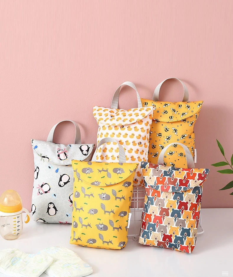 Бесплатная доставка, 1 шт., влажный мешок 20*24 см, сухая сумка, Детский водонепроницаемый многоразовый мешок на молнии с принтом, вкладыш для влажных подгузников