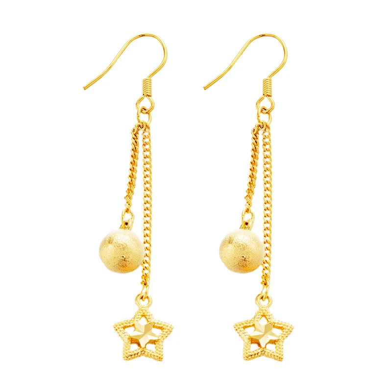 Женские длинные серьги с кисточками, серьги золотого цвета 24 к с декором листья, месяц, звезды, цветок, сердце, круг, свадебная мода