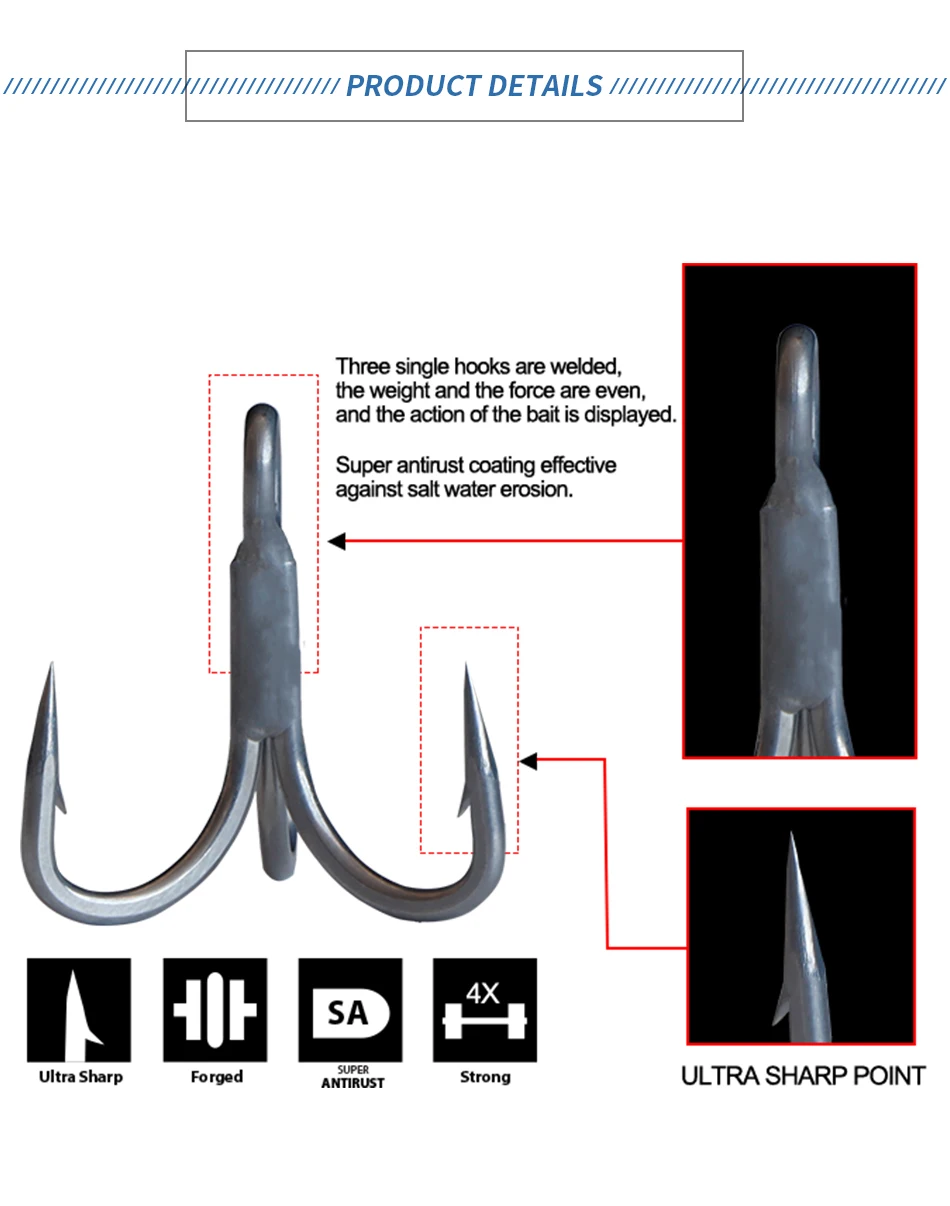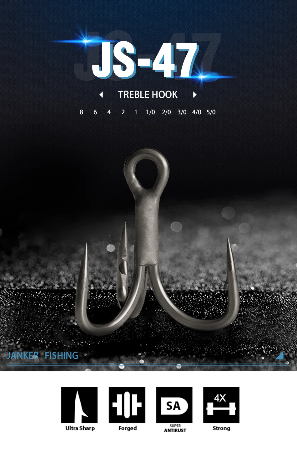 JS-47 рыболовные супер Антикоррозийные тройные Крючки для лодки 4X прочный рыболовный крючок 8 50 тройные рыболовные крючки из высокоуглеродистой стали