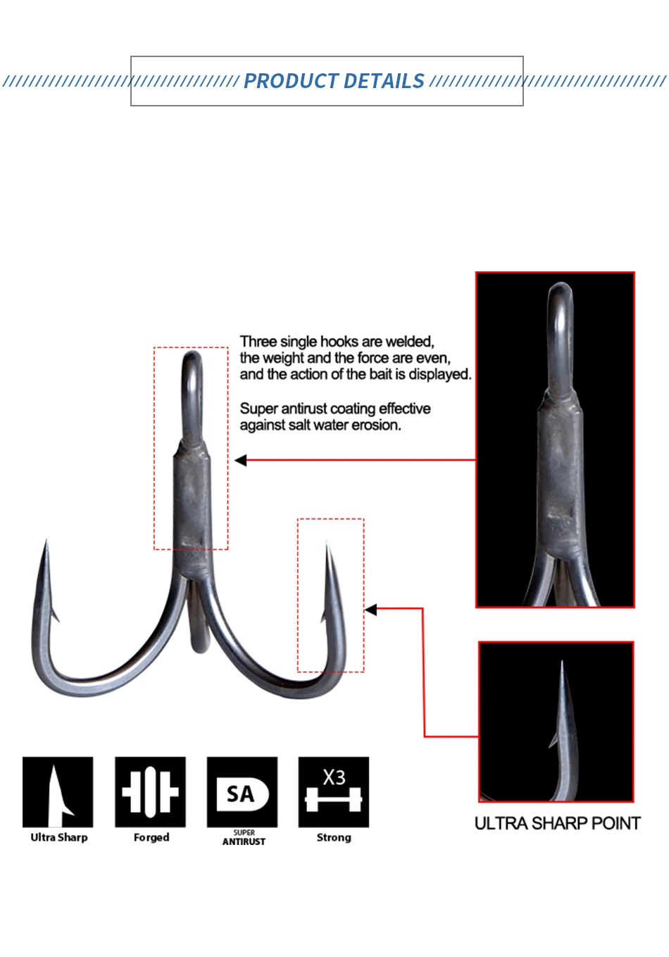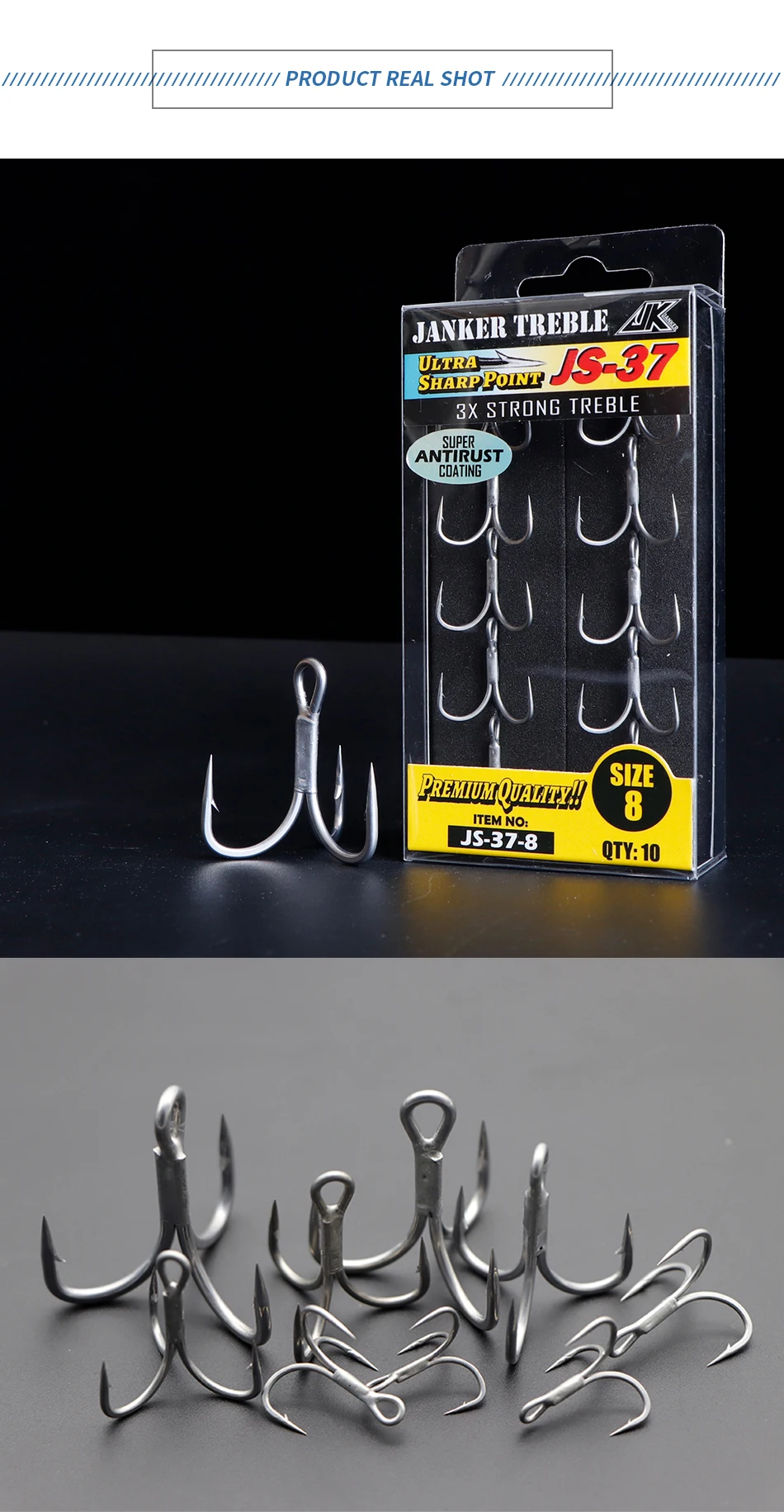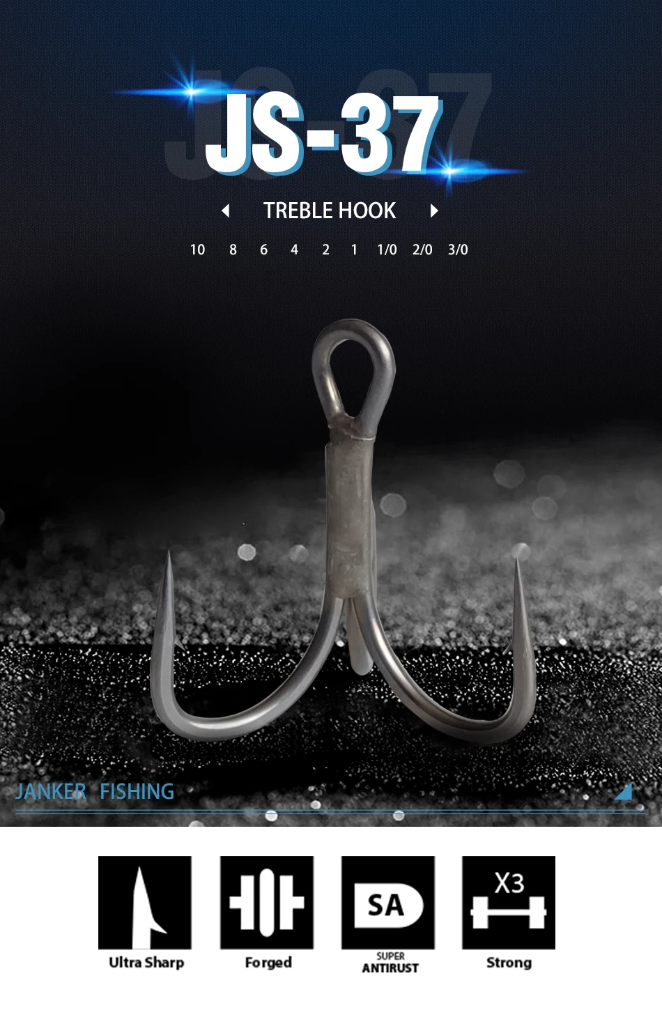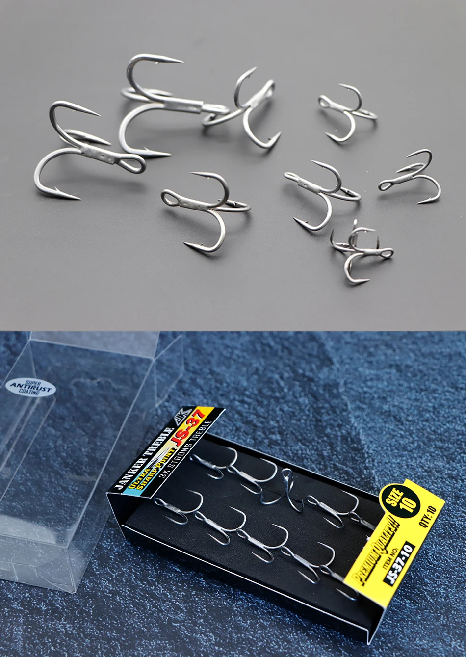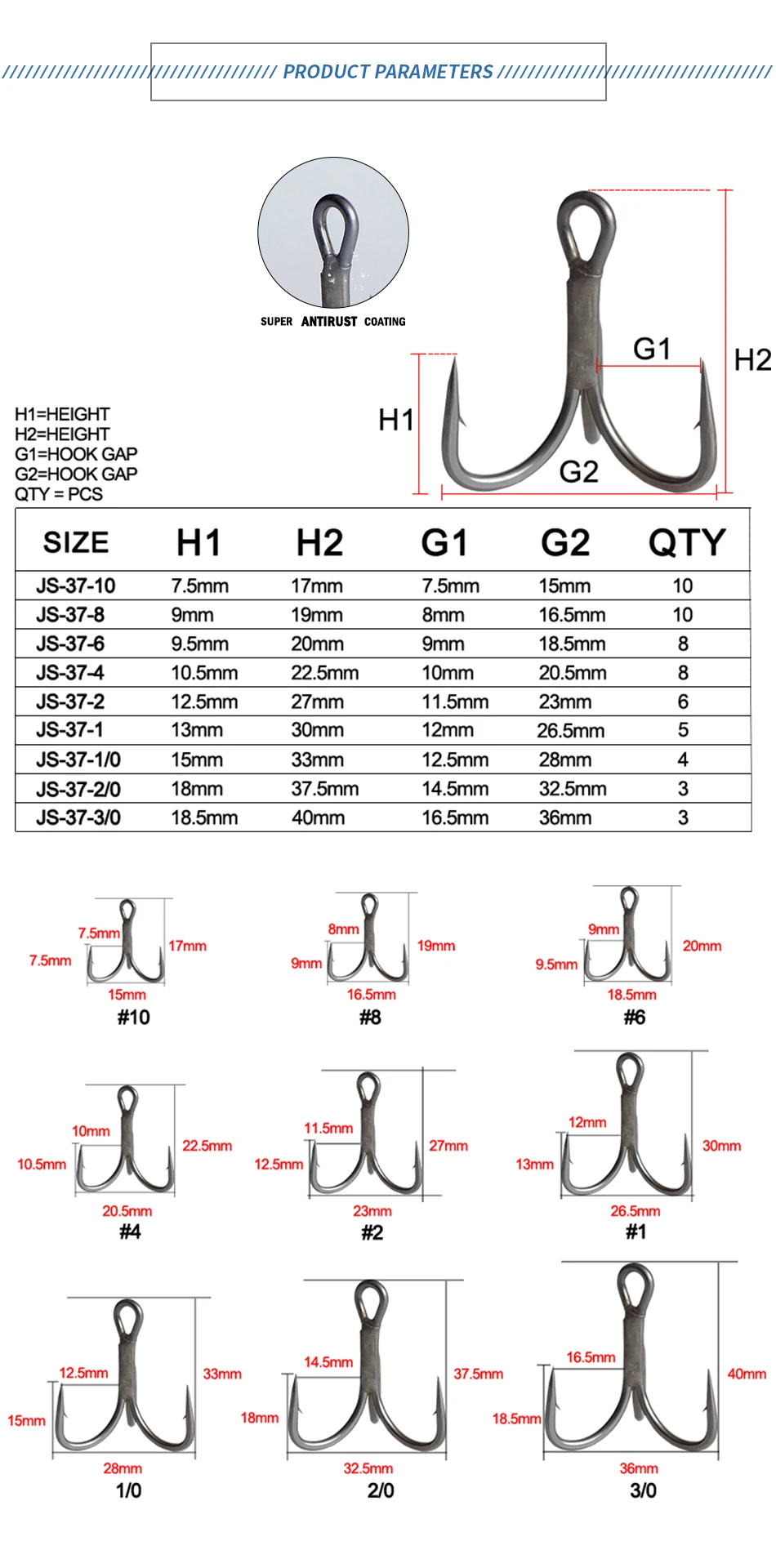 Прочные тройные рыболовные крючки JS-37, 10 #1 и 10 20 30, супер Антикоррозийные рыболовные крючки с бородкой для морской лодки