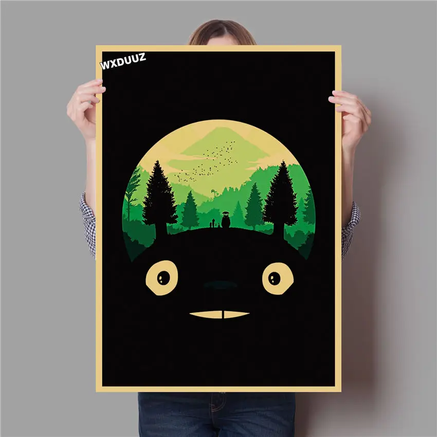 Постер аниме для украшения дома и бара Хаяо Миядзаки на винтажном стиле Мой сосед Тоторо постеры для детской комнаты Холст Картина M603