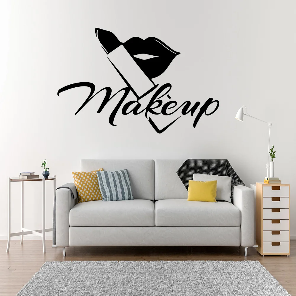 Виниловые наклейки на стену для салона красоты, губная помада, глаза, обои для салона красоты, украшения для спальни, фотообои, постер, цитаты, макияж