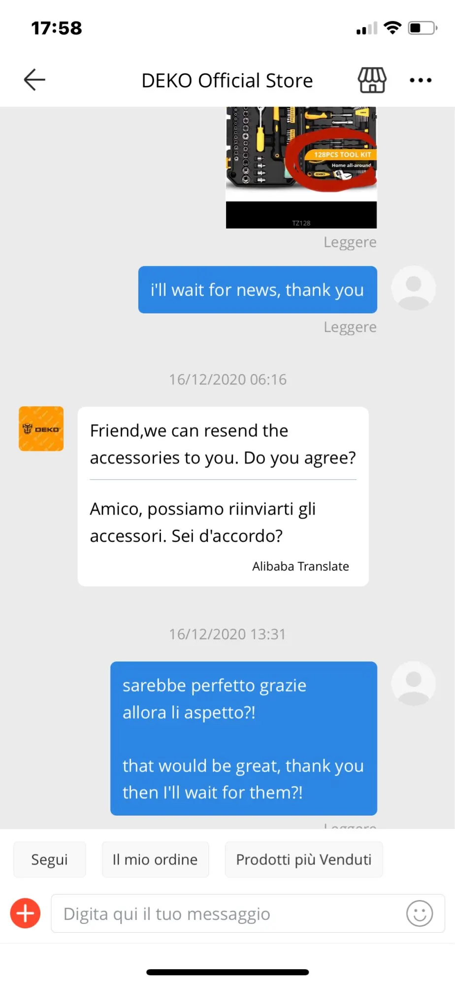 Неправильные товары, неполные кассеты rimediano, наполовину пустые, оплачены полностью, чтобы не ответить, ничего не сделано после дней и после нескольких напоминаний! Сделайте 15 дней, чтобы сделать это, указав, что я отправлю недостающие вещи, но в конце концов они не делают это и не возвращаются! Нечестный
