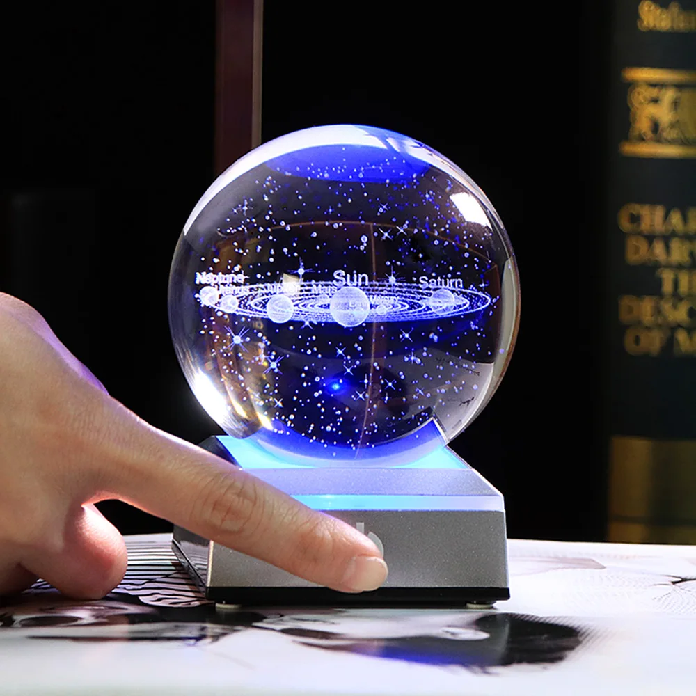 Новый стиль 3D K9 кристалл солнечная система шар 8 см Галактический узор Сфера светодиодная основа для шаров для украшения дома
