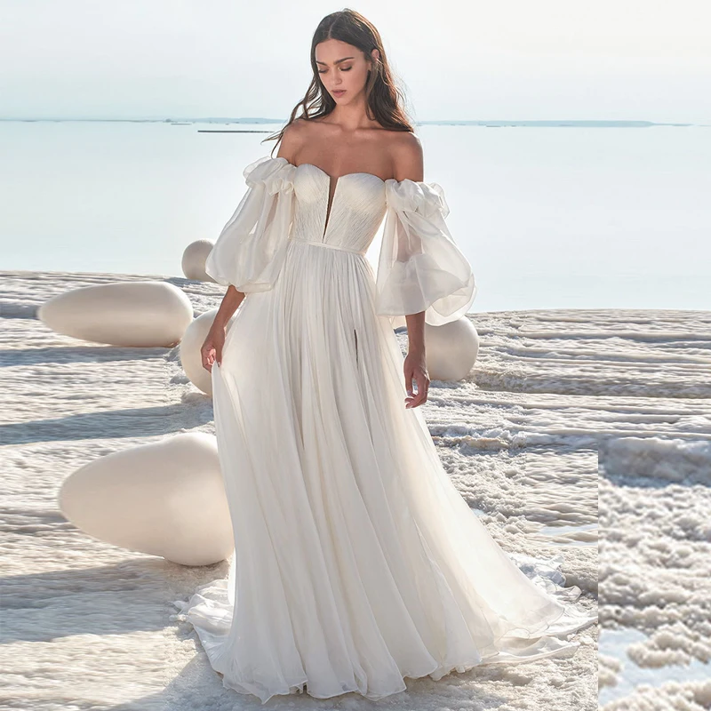 Богемное свадебное платье 2021, кружевное пляжное свадебное платье ...