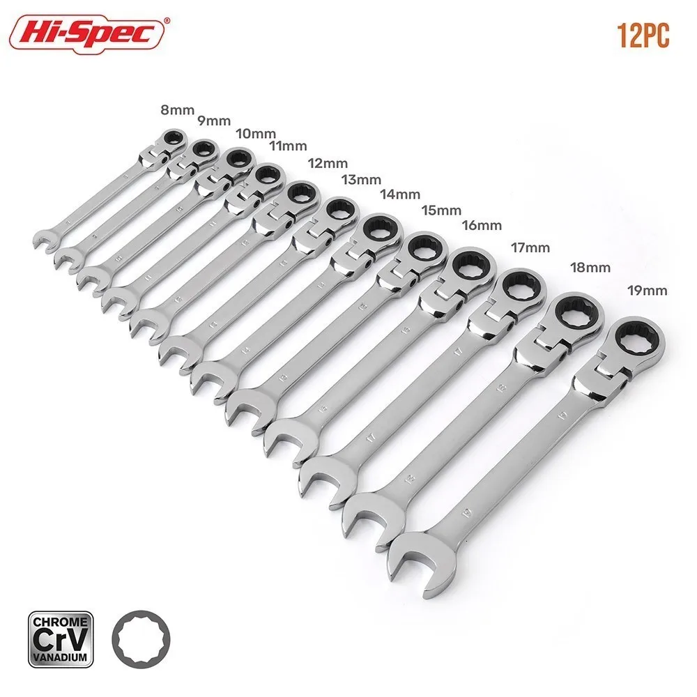 Набор ключей Hi-Spec 68, 12 шт., набор ключей с трещоткой, набор ключей гаечных ключей, гибкий комбинированный гаечный ключ, ручной инструмент для ремонта автомобиля