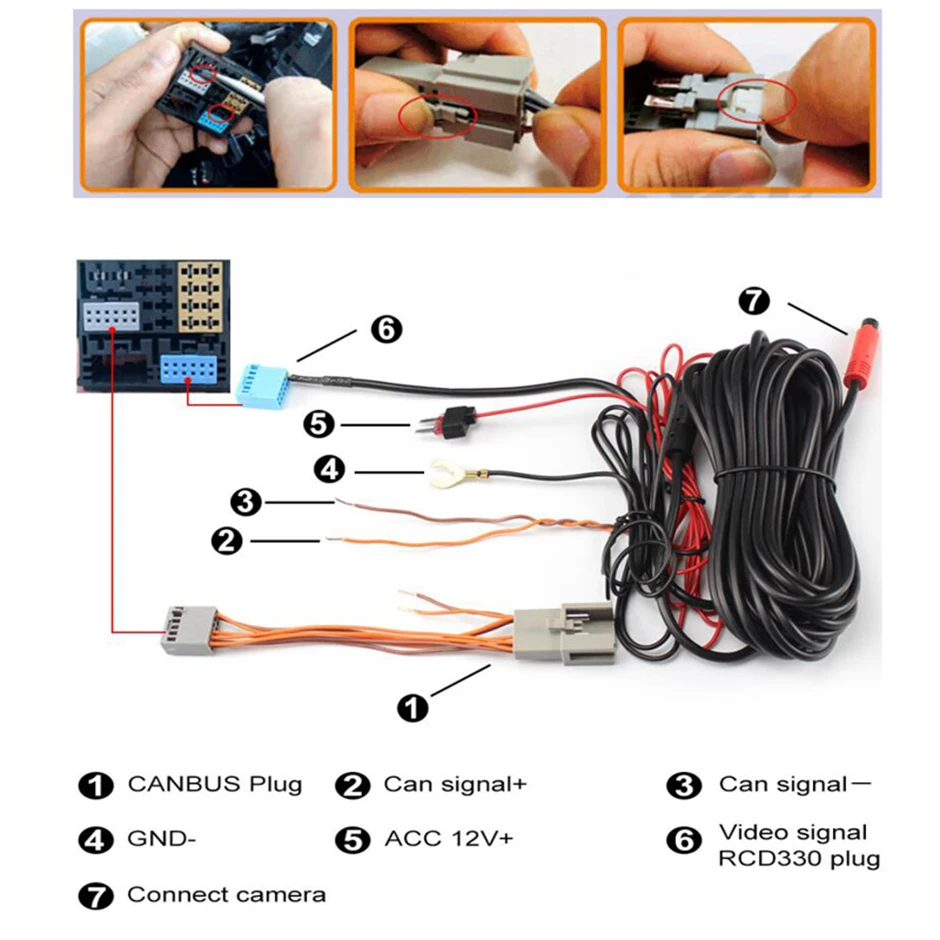 Примечание: При подключении вилки CANBUS камера не работает, вам нужно подключить 2 и 3 к правильной сигнальной линии CANBUS.