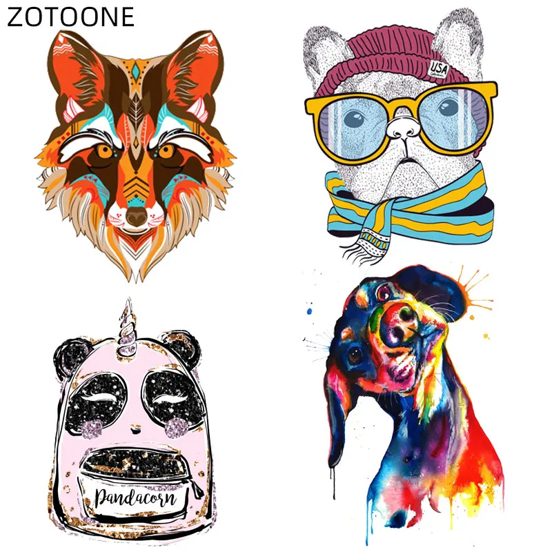 Патчи ZOTOONE с лисой и пандой, цветные наклейки с утюгом для собак и аниамов для одежды, термонаклейки, виниловые аппликации для детей своими руками