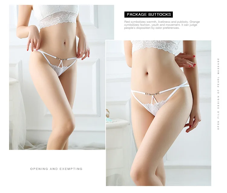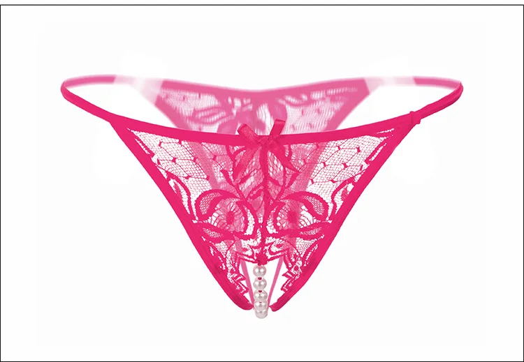 Трусики-стринги женские кружевные с вырезом, трусики с жемчужинами