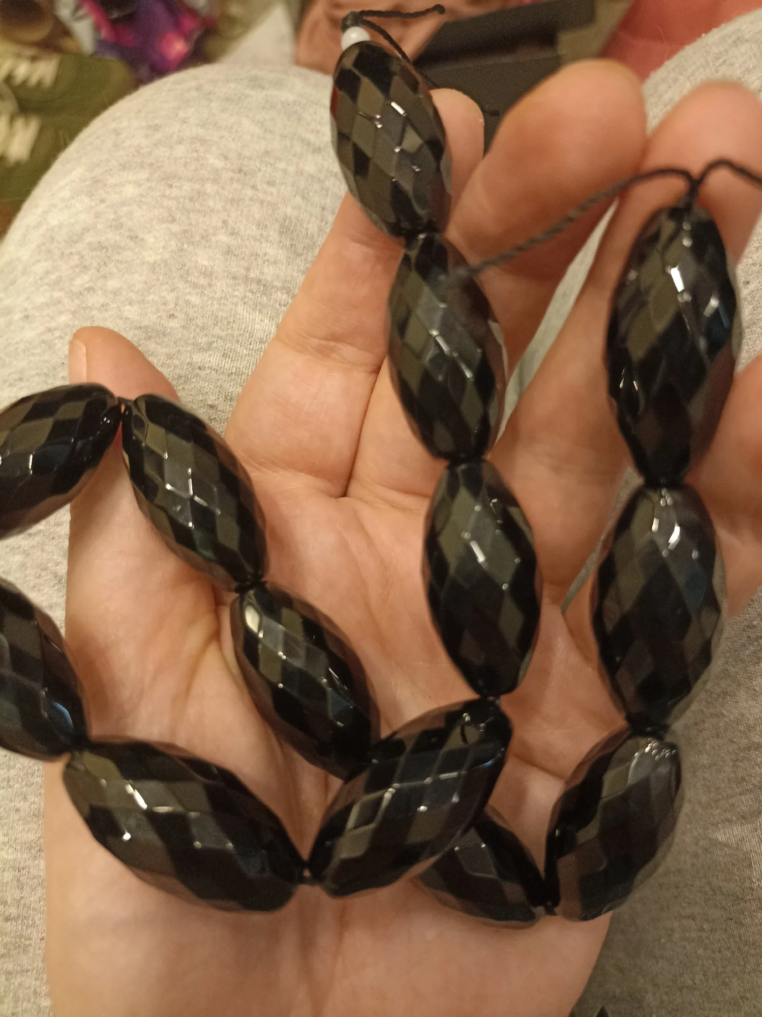 Бусины из натурального черного агата для изготовления ювелирных изд...