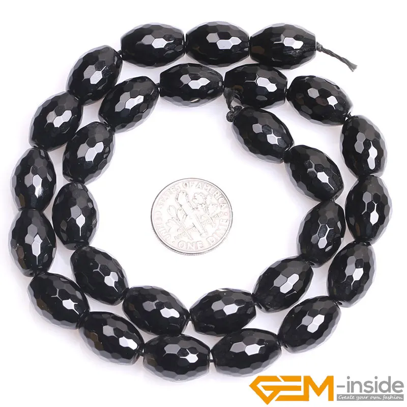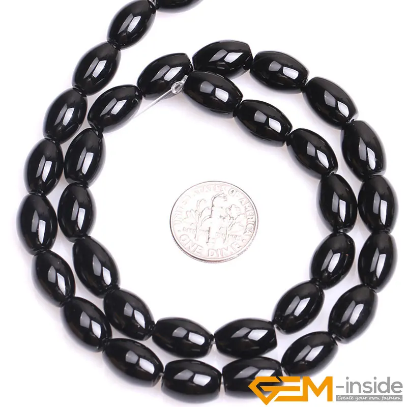 Бусины в виде риса черного агата из натурального камня для изготовления ювелирных украшений, нитка 15 дюймов, бусины для браслета DIY 6 мм 8 мм 10 мм 12 мм