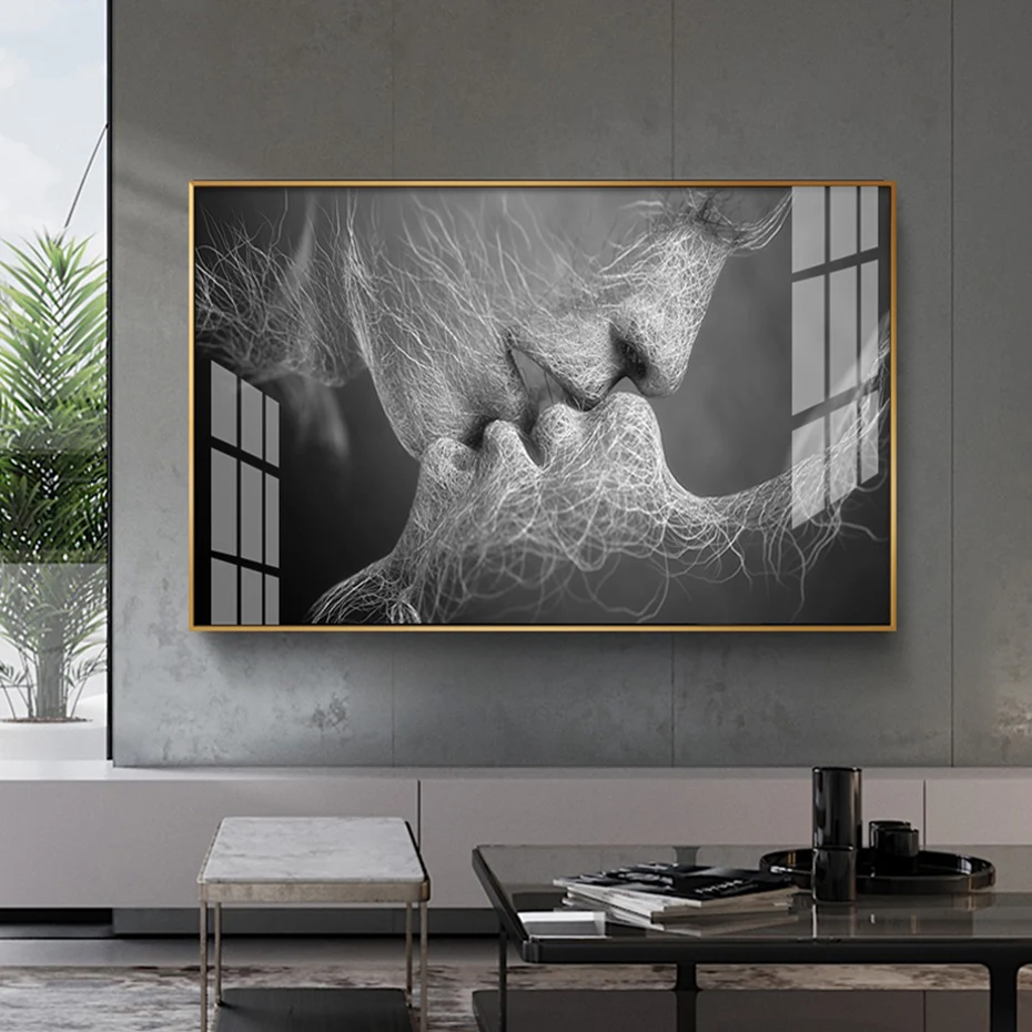 Синий Современный абстрактный поцелуй любви холст картина плакат и принты картины для гостиной спальни стены