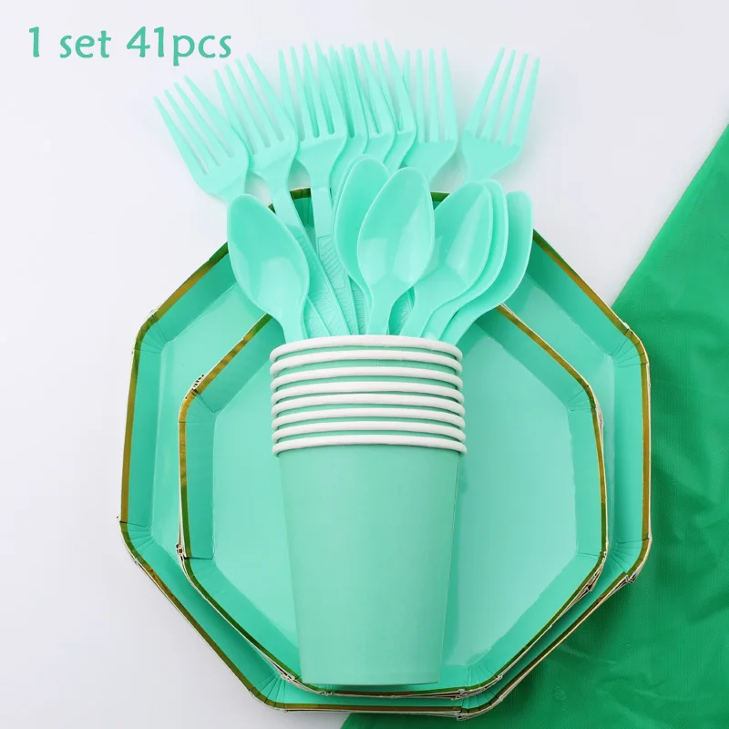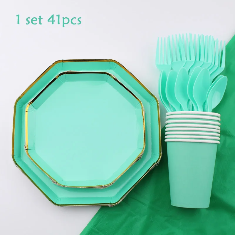 Набор столовых приборов Octagonal, утки, зеленые, одноразовые, кружки, тарелки, салфетки
