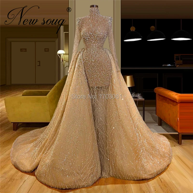 Блестящие вечерние платья цвета шампанского для выпускного вечера, съемная юбка, новинка 2020, индивидуальные марокканские кафтаны с бисером, турецкий Дубай, женские вечерние платья