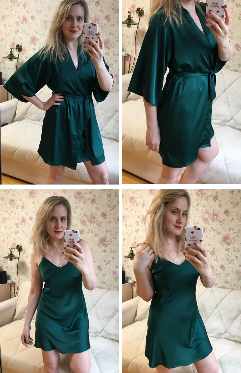 Она как и халат приятна к телу и сделана очень качественно. НО: 1) я не обратила внимание на то, что у неё открытая спина. В этом есть определённый минус. 2)подтянула единственную лямку на спине, только благодаря этому более менее стала прикрывать грудь. 3) спать в такой наврятли возможно, чисто глаза порадовать. Но в целом покупкой я довольна. Пришло быстро, примерно за 2 недели в Рязань.