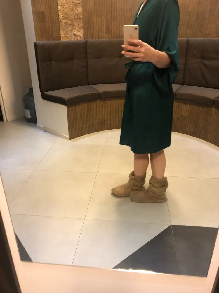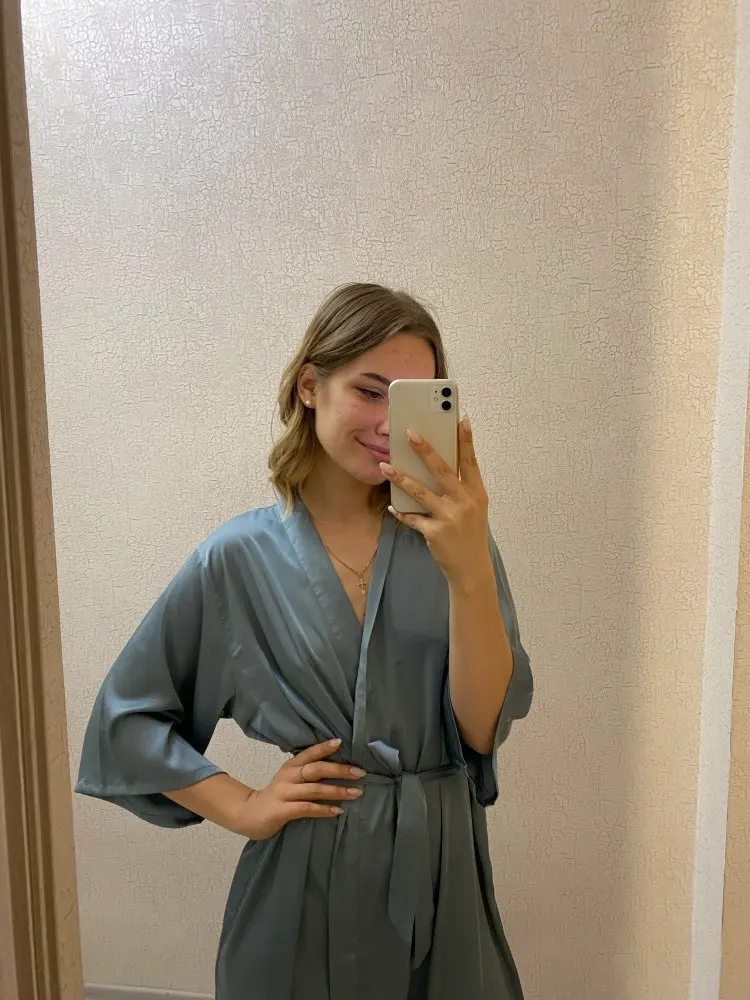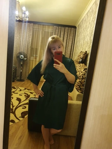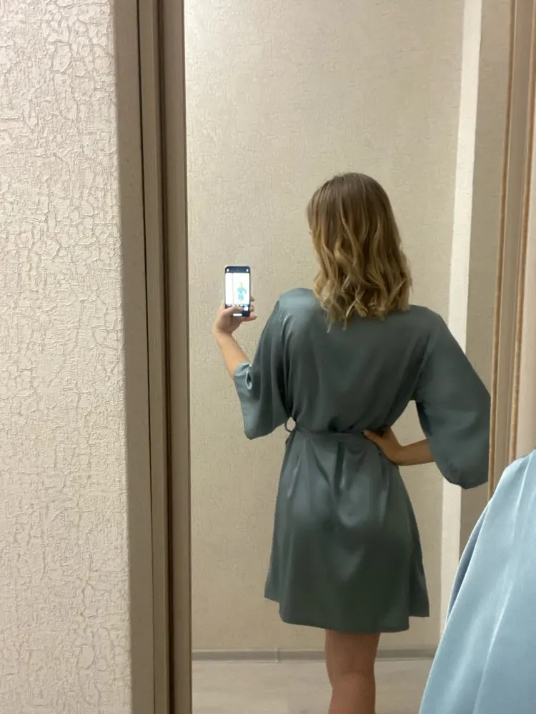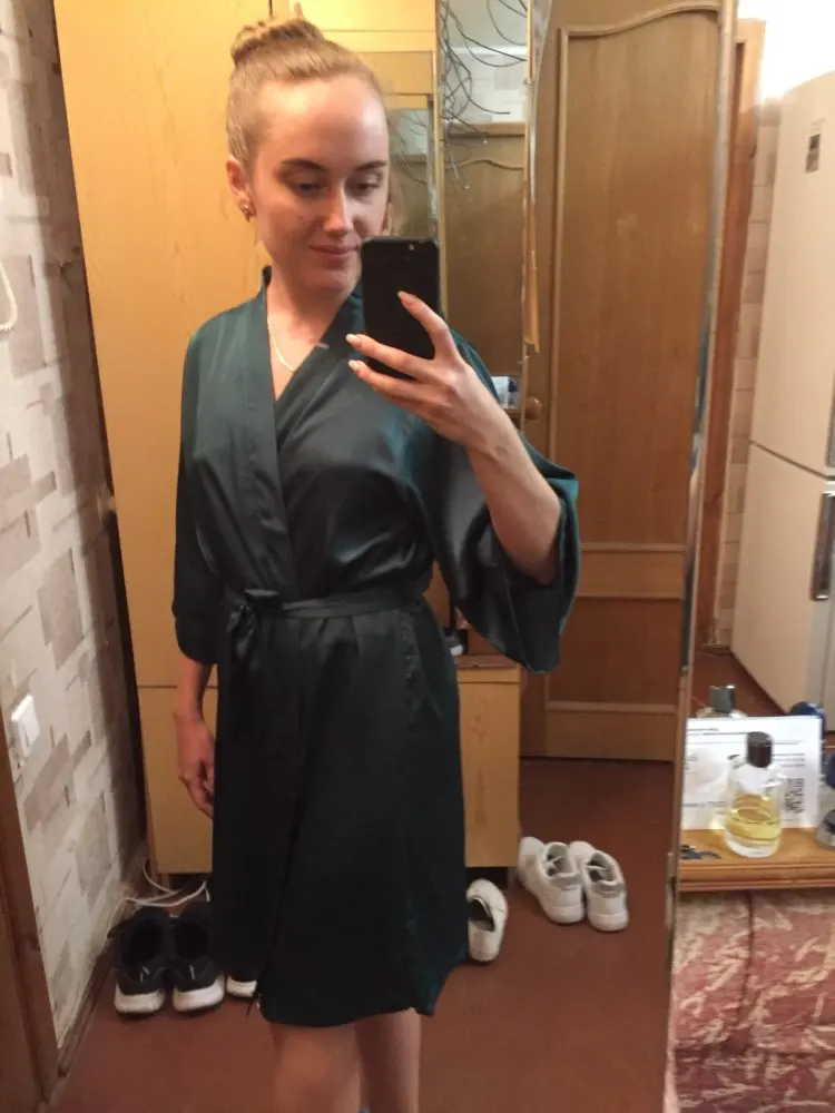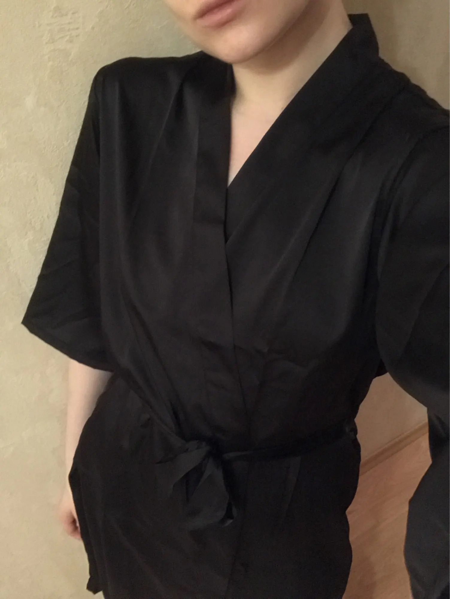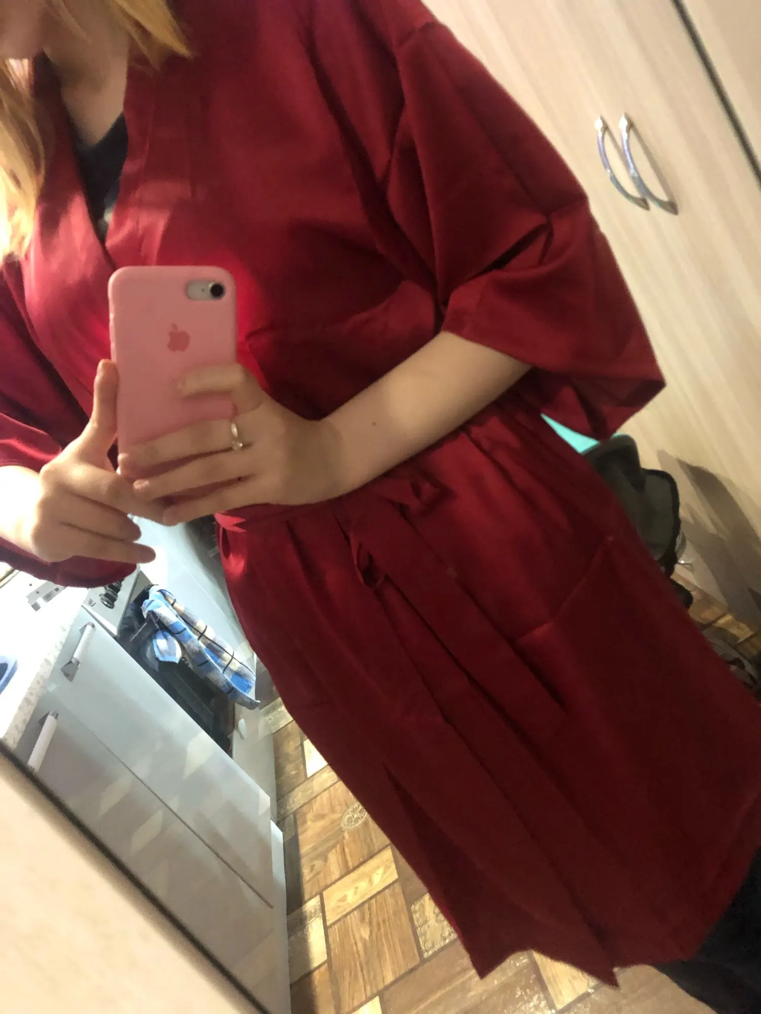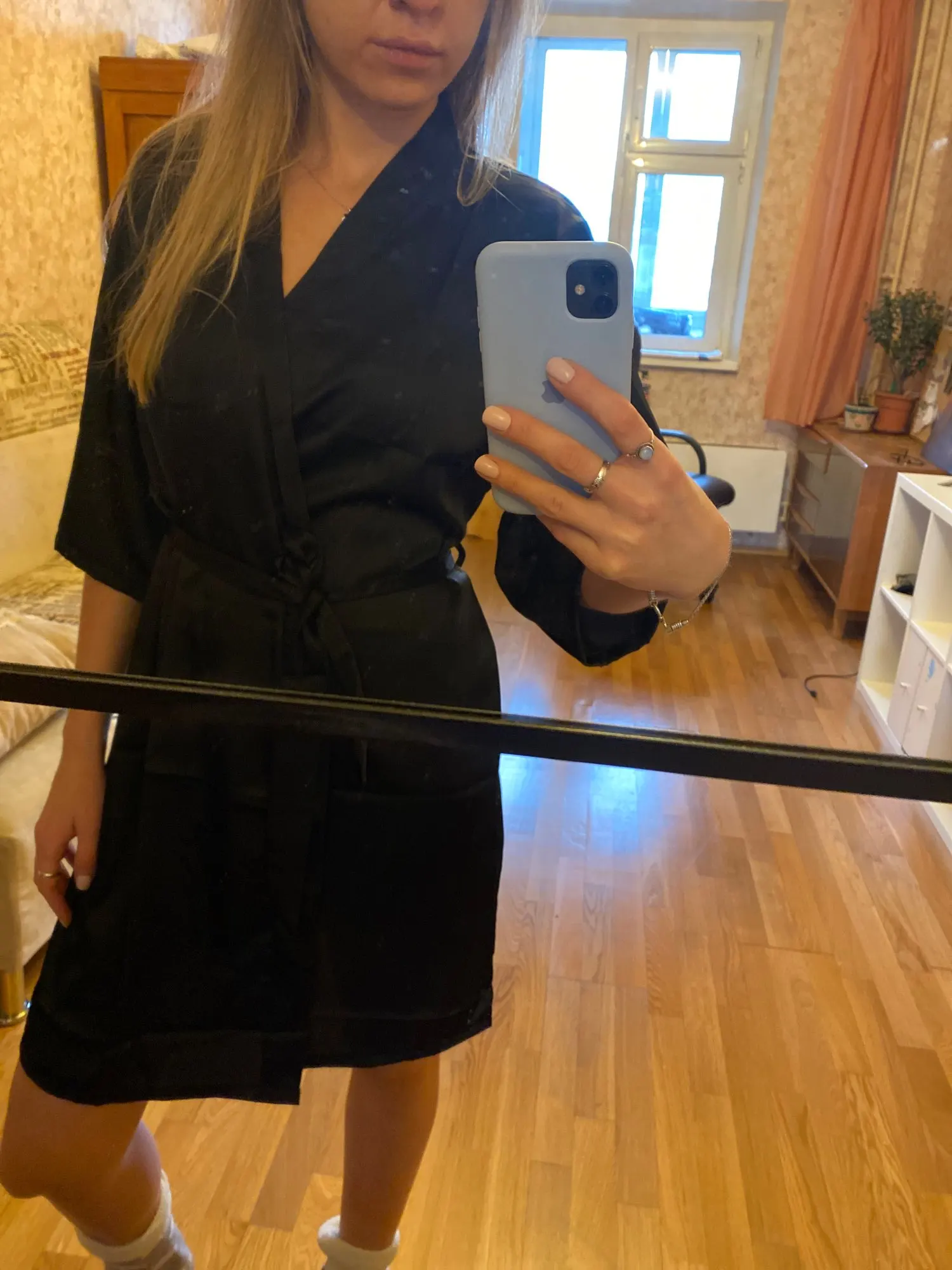 Шикарный халатик. Даже на подарок можно брать, не стыдно будет. Ткань ооооочень приятная к телу. Своих денег 100% стоит, это не дешевая ткань для халатов с али, которая похожа на облезлое что-то. Цвет красивенный- пыльная Роза. Реально класс. Есть ниточки, но не критично. На мой 42й русский (S), с объемами 83-67-90 можно было брать на размер меньше, потому что этот большеват и длина по колено. Я бы хотела повыше и более приталенный, буду ушивать.