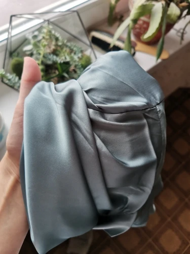 Приятный цвет, по размеру на 40-42 подошёл. ткань приятная тонкая струящаяся , но не дышащая, бывает жарко. Завязка внутри пришита не правильно к краю передней полочки , а правильно к боковому шву пришивать. в целом довольна. Доставка очень быстрая, спасибо продавцу.