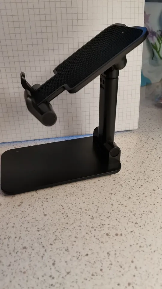 Очень довольна качеством. Смотрится солидно. Удобно складывается.Регулируется высота и наклон. Телефон и планшет держит хорошо.