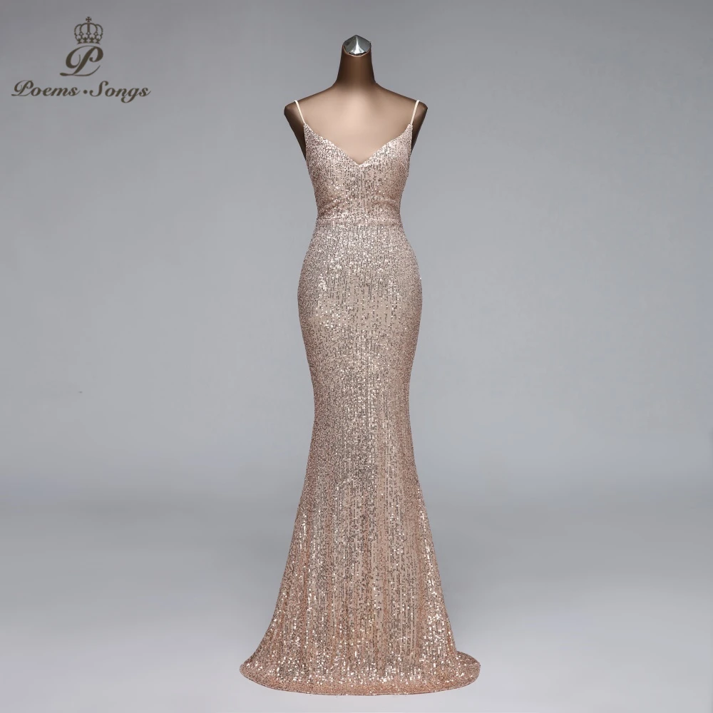 Вечернее платье русалки Poems Songs с блестками, платье для выпускн...
