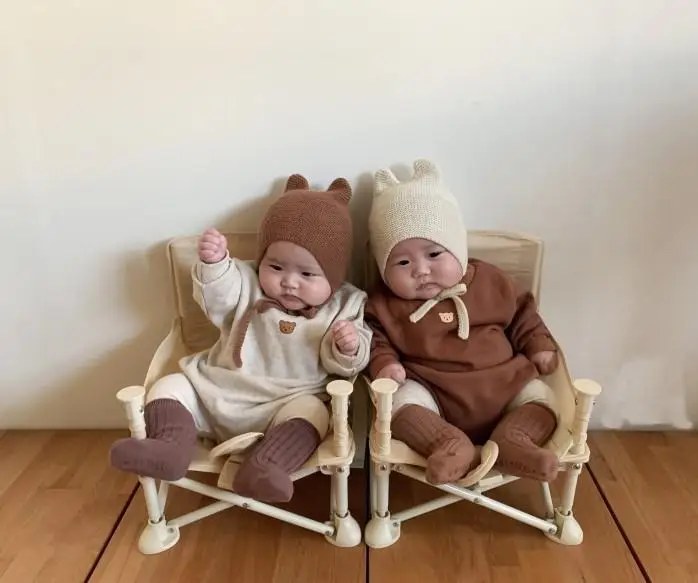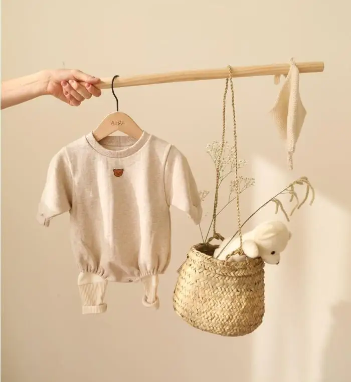 Комбинезон для мальчиков и девочек, хлопковый, с принтом медвежонка, с длинным рукавом