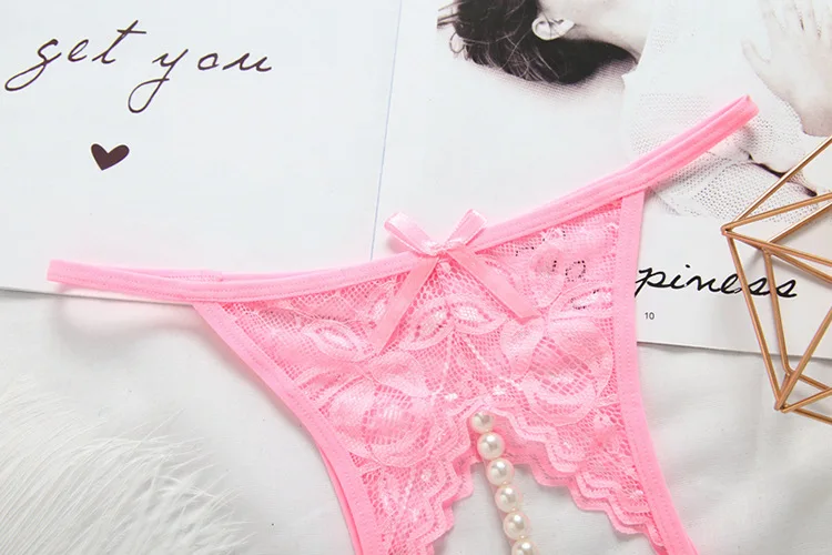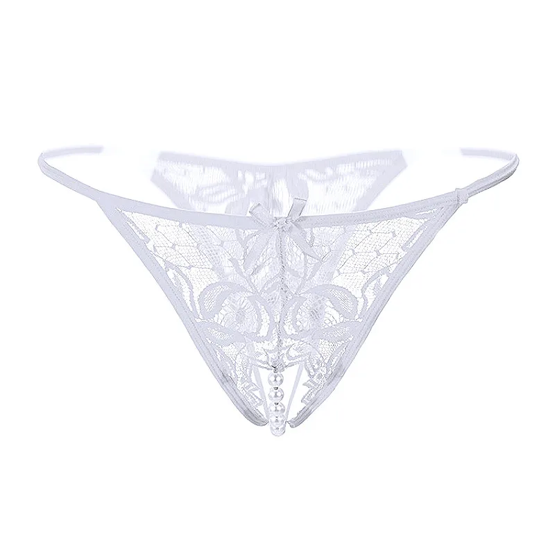 Трусики-стринги женские кружевные с вырезом, трусики с жемчужинами