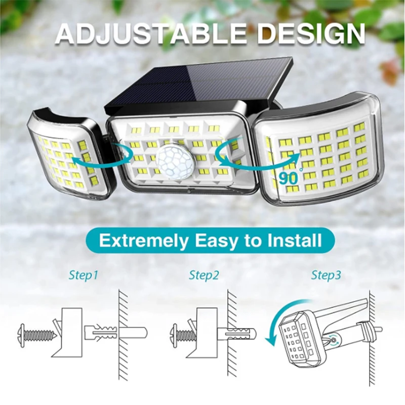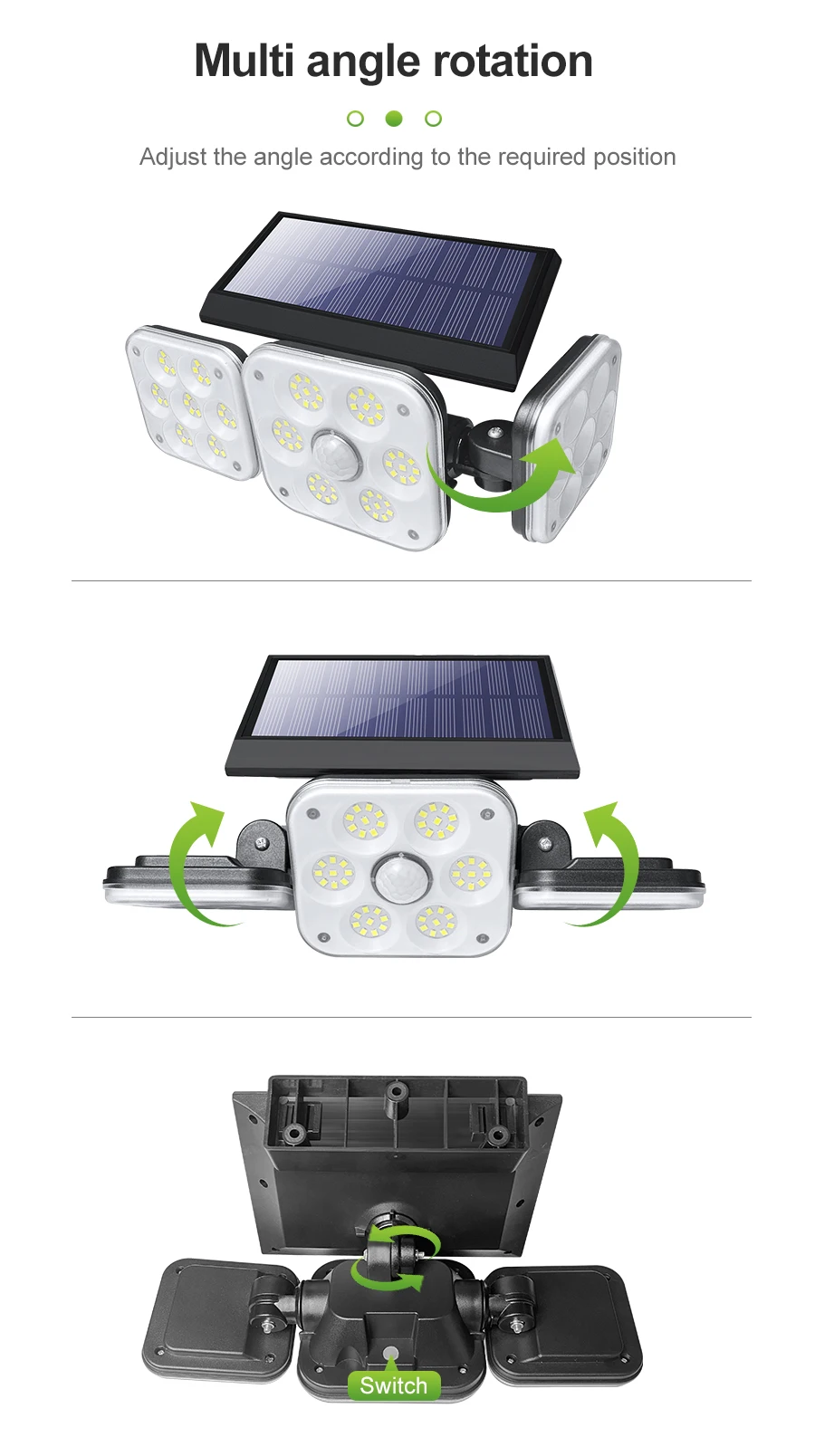 Лампа на солнечной батарее с датчиком движения построена на солнечной батарее емкостью 2200 мА · ч и изготовлена из прочного АБС-материала, что гарантирует, что эти прожекторы солнечных батарей могут выдерживать элементы и плохую погоду. IP65 водонепроницаемые наружные солнечные сенсорные огни обеспечивают дополнительную безопасность и безопасность для вашего дома даже в дождливую или зимнюю погоду