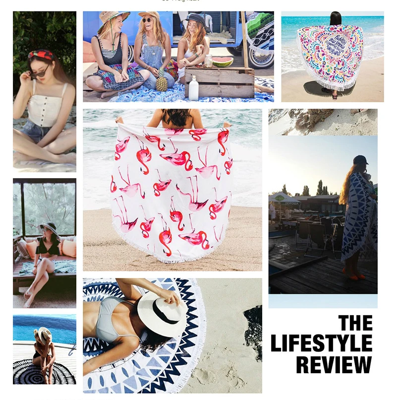 Круглое банное полотенце из микрофибры, с кисточками, 150 см