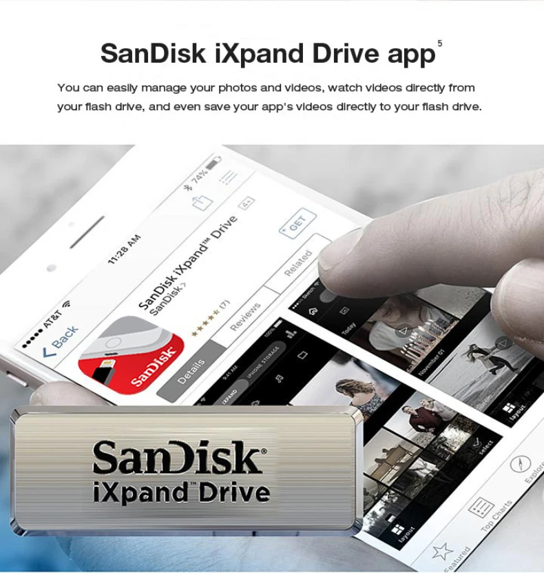 Флеш-накопитель Sandisk iXPand, USB 3,0, OTG, 64 ГБ, 128 ГБ