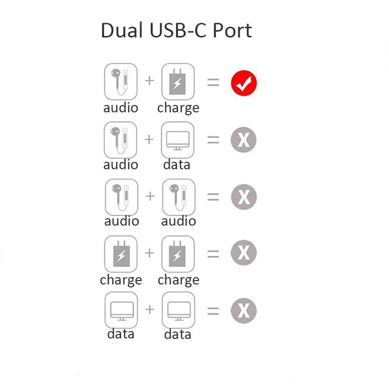 2)Пожалуйста, используйте продукт в соответствии с логотипом «зарядка и музыка» на продукте; В противном случае, продукт не может использоваться нормально.Особенности1. Чип Hi-Fi/DAC-Оснащенный чипсетом DAC, этот двойной USB-C разъем предлагает технологию шумоподавления, воспроизведение музыки с высокой скоростью, высоким разрешением и низким уровнем шума.