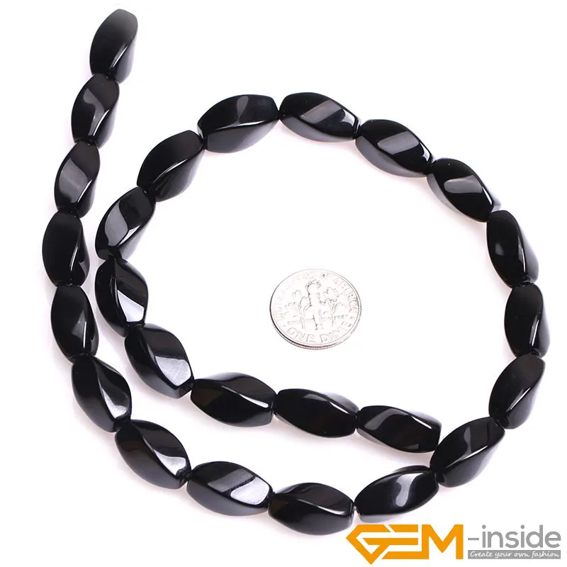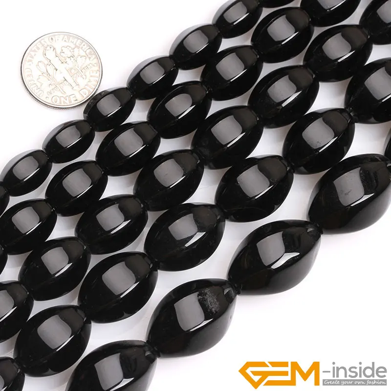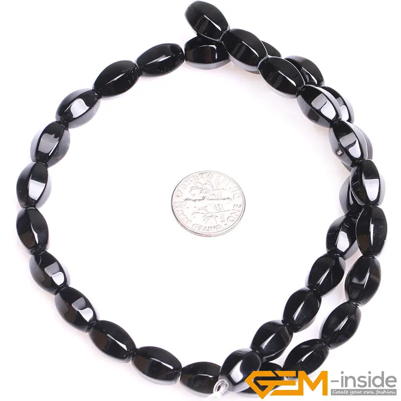 Бусины в виде риса черного агата из натурального камня для изготовл...