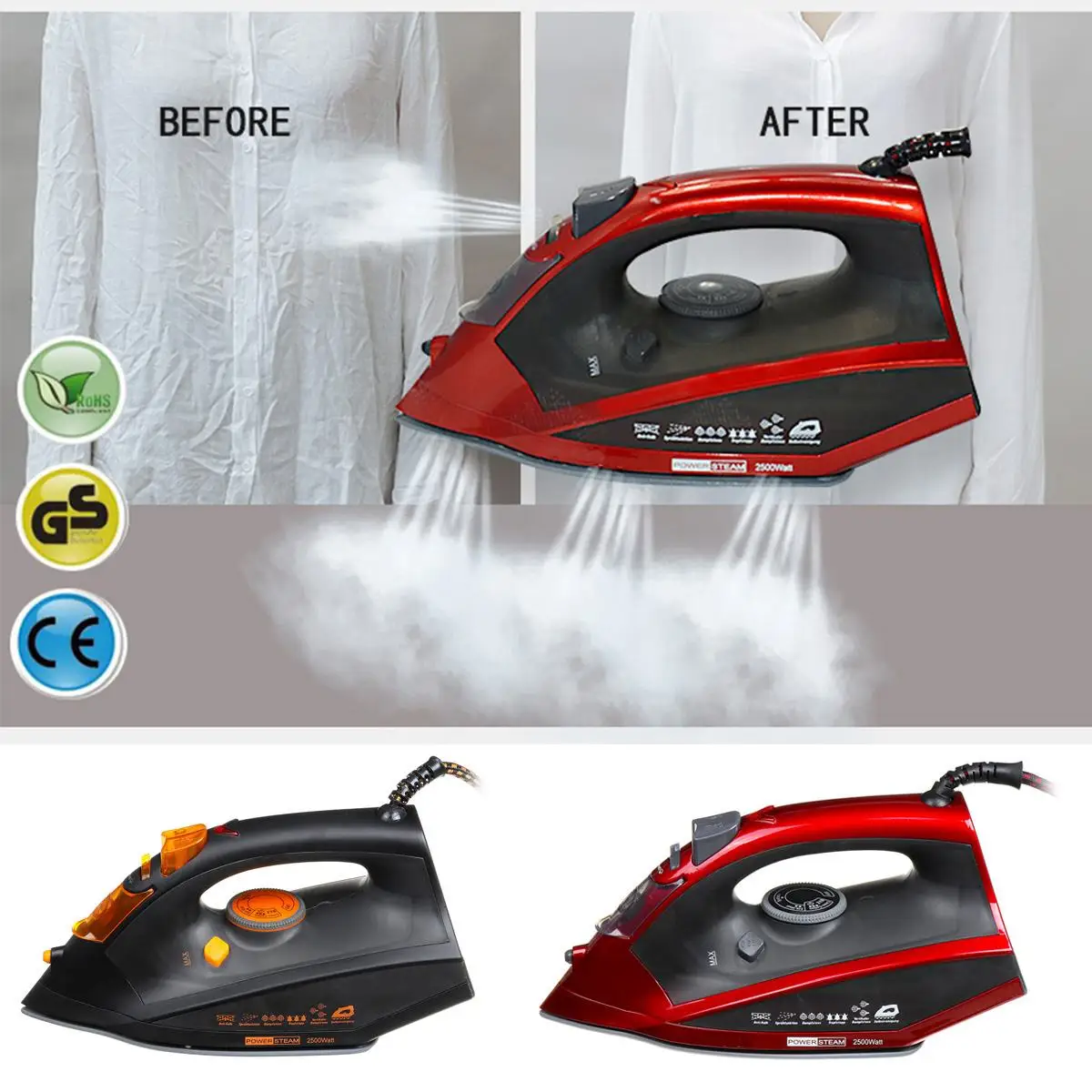 Электрический паровой утюг для путешествий, домашней одежды, 4 скорости, 220-240 В, 2500 Вт