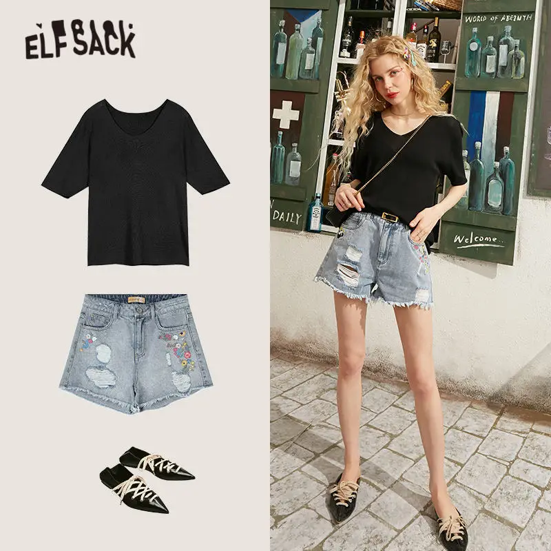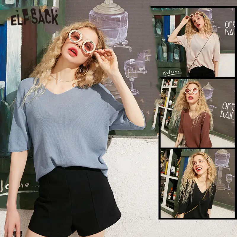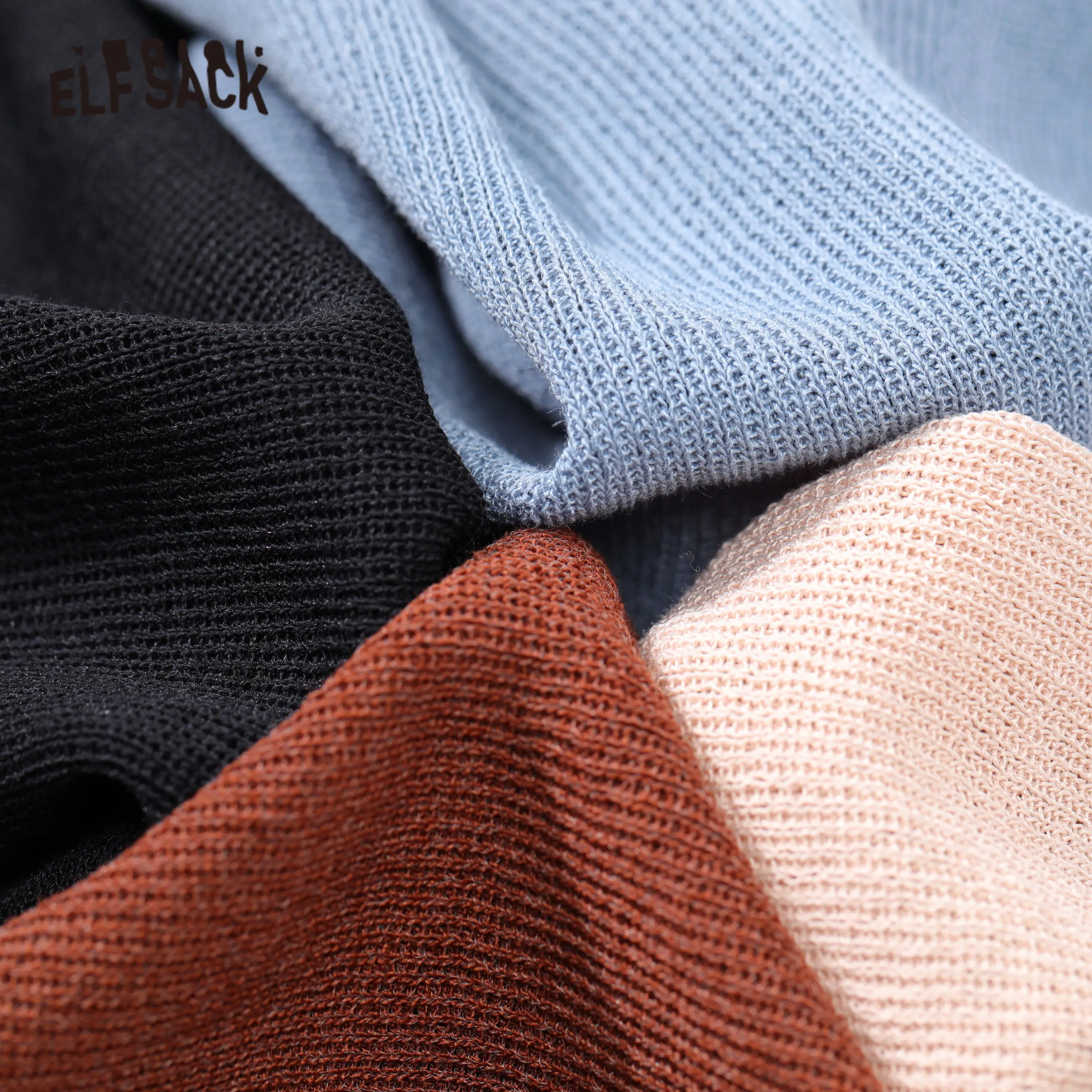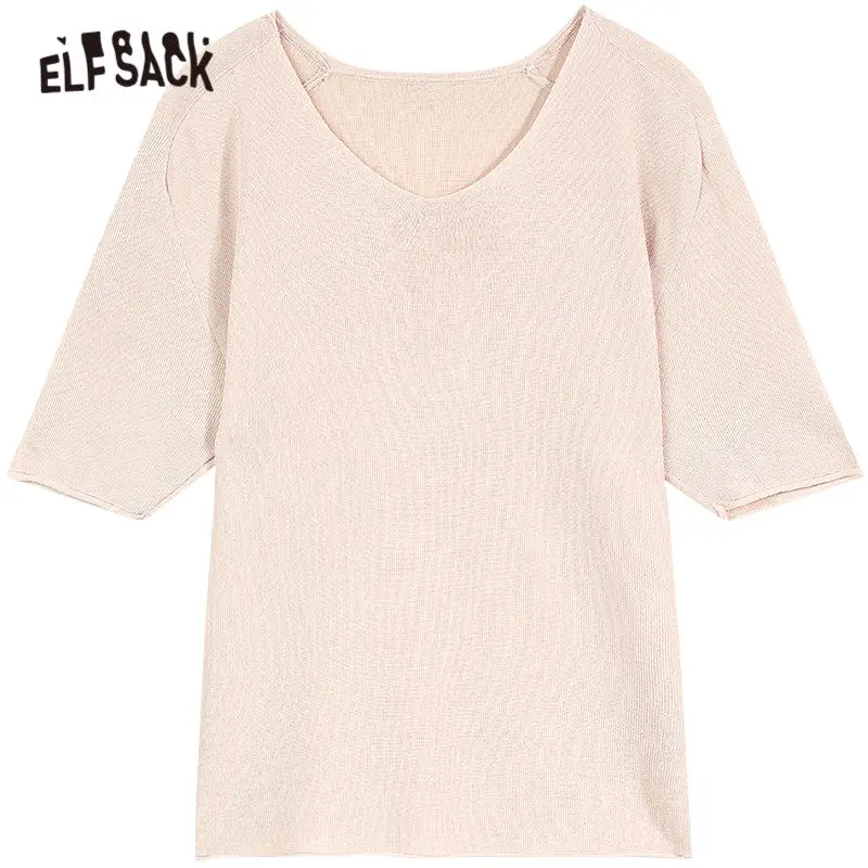 ELFSACK многоцветный однотонный минималистичный Повседневный вязаный пуловер, свитер для женщин 2020, весенние новые базовые Топы на каждый день для девушек с коротким рукавом