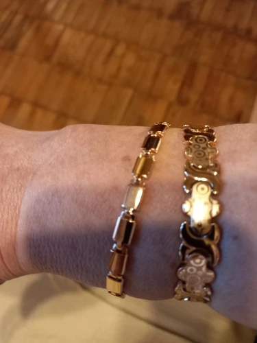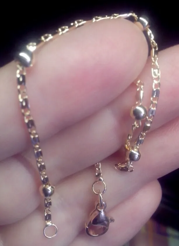 браслетик чудесный, ношу неделю не снимая. на руке смотрится прекрасно, под золото. может я и ошибаюсь, но с каждым разом после мытья посуды и купания еще лучше выглядит. спасибо