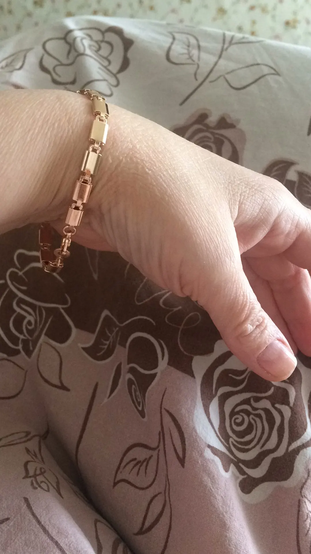 браслет красивый,но на золото не похож,слишком розовый,но сделан отлично,за такую цену грех жаловаться.