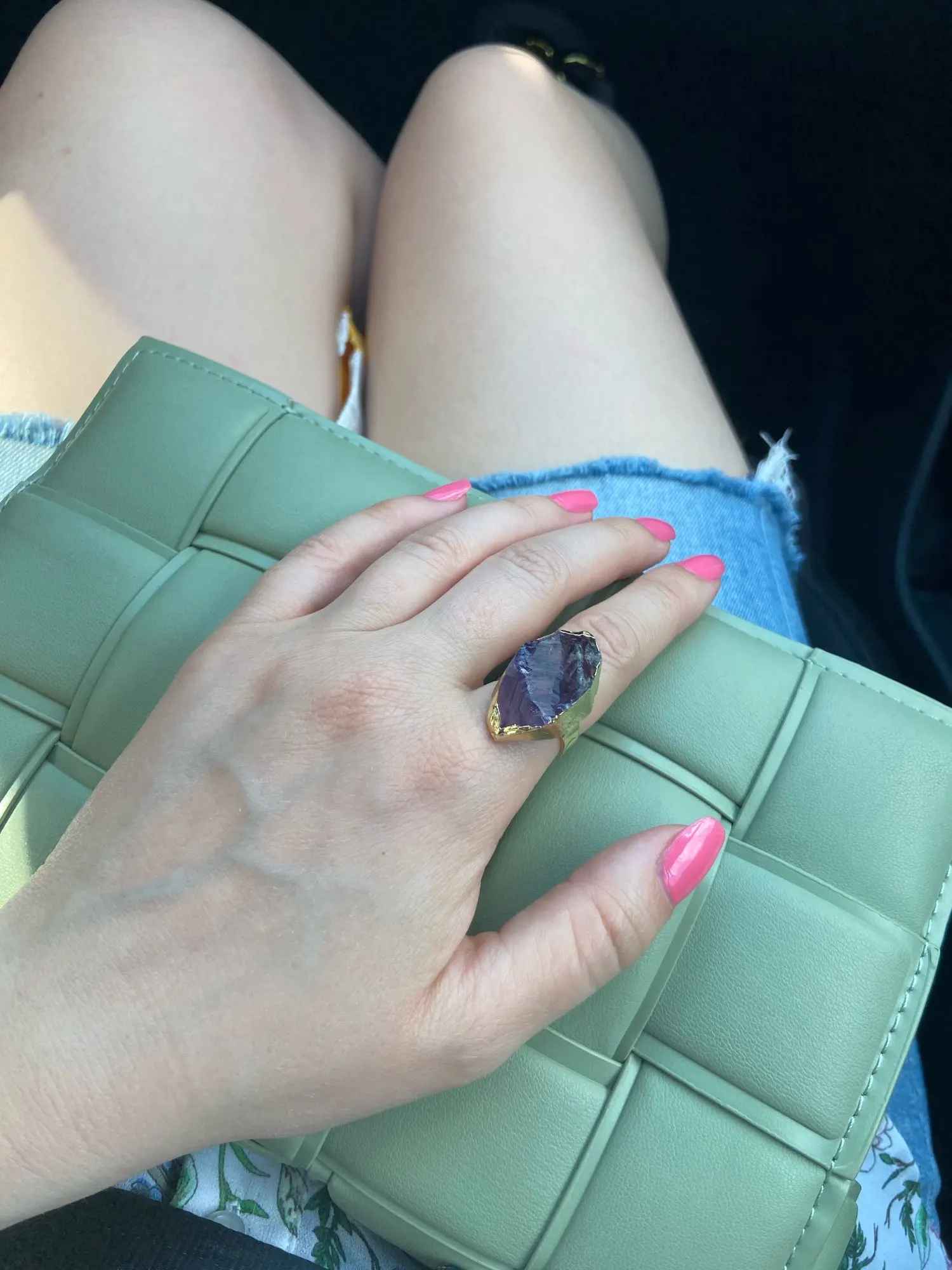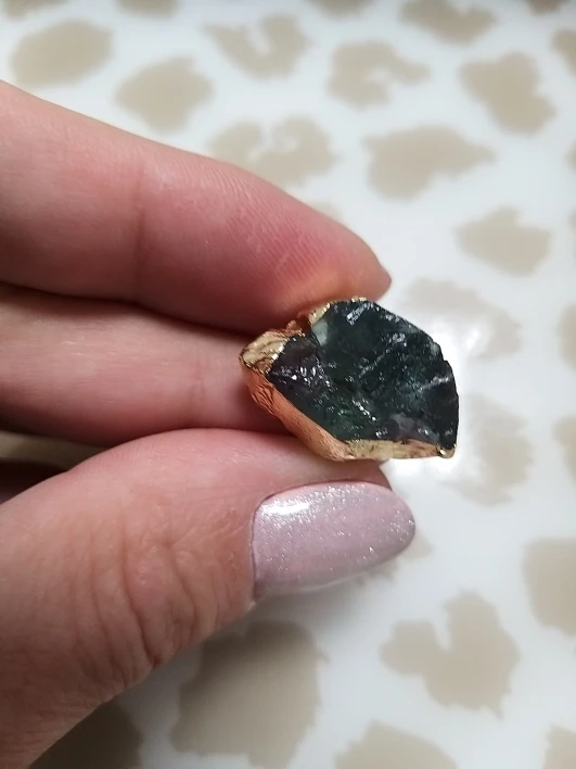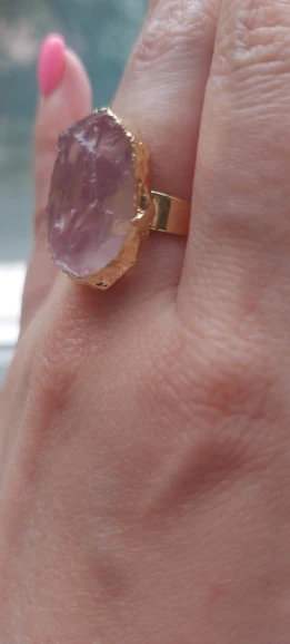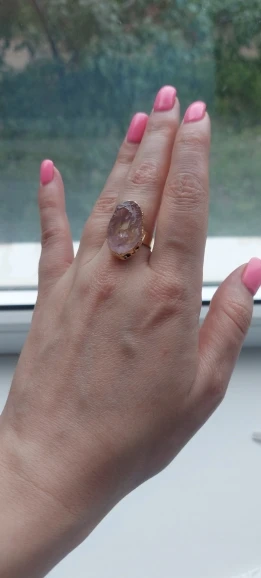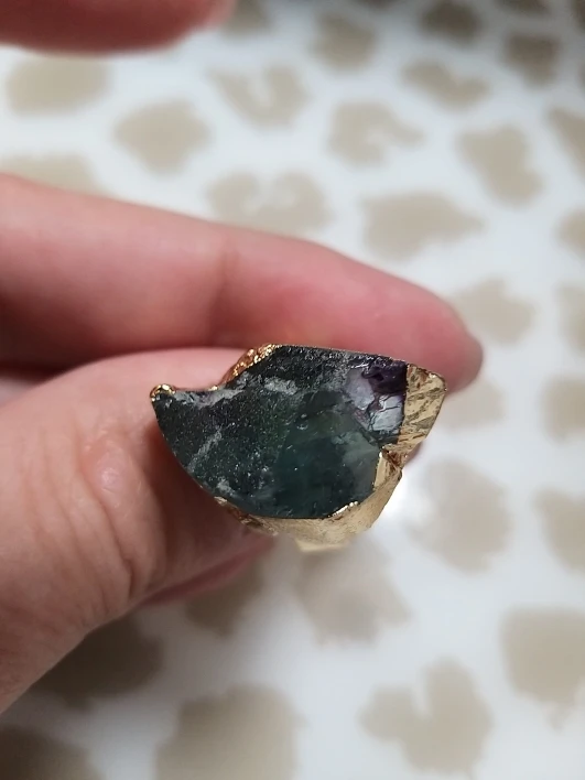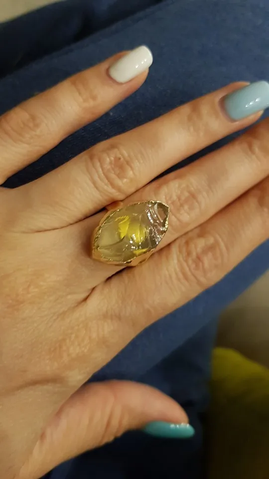 кольцо оставило противоречивые чувства, несмотря на предупреждение продавца что это необработанный природный камень, внешне это выглядит очень грустно... камень плоский, с мутной поверхностью, непонятного цвета... то ли желтого, то ли белого, то ди с фиолетовым оттенком... очень явно просвечивает обод кольца через камень, это портит все восприятие... наверно можно было прервать кольцо под камнем, чтоб не просвечивал металл, было бы лучше... увы, носить такое не будем((